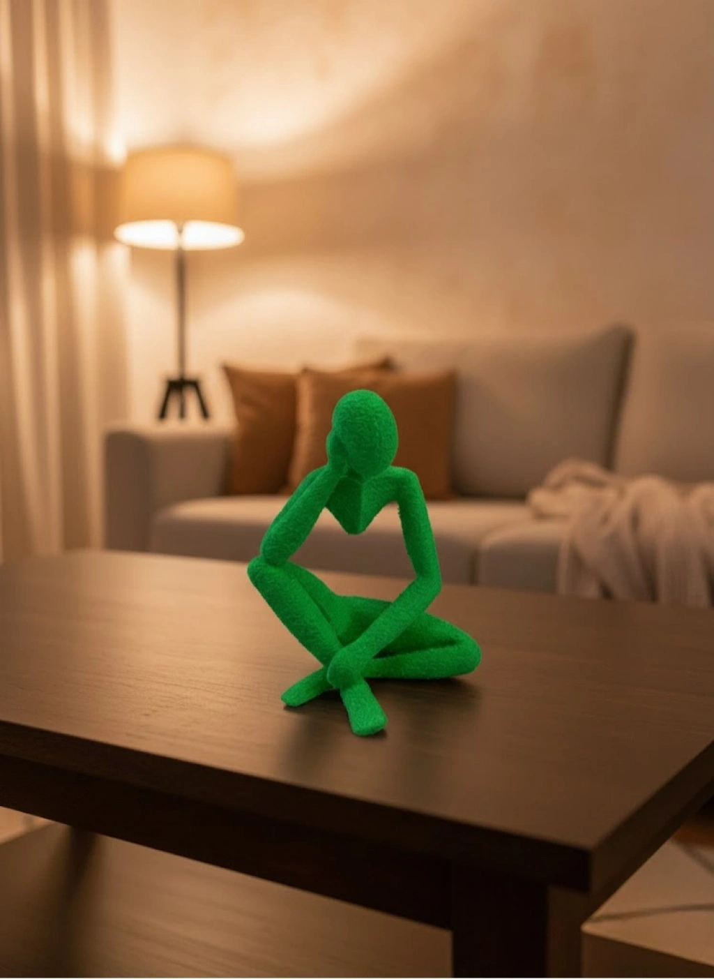 Dekoratif yeşil insan figürü, minimalist formu ve modern duruşu ile yaşam alanlarına sanatsal bir dokunuş kazandırır. 8×13 cm ölçüsü sayesinde masa, raf, konsol veya kitaplık üzerinde rahatlıkla kullanılabilir. Yeşil rengi ortama canlılık katarken sade tasarımı sayesinde göz yormaz. Modern, minimalist ve cozy dekorasyon stilleriyle uyum sağlayan bu figür, bulunduğu alanda dikkat çekici ama dengeli bir görünüm oluşturur.