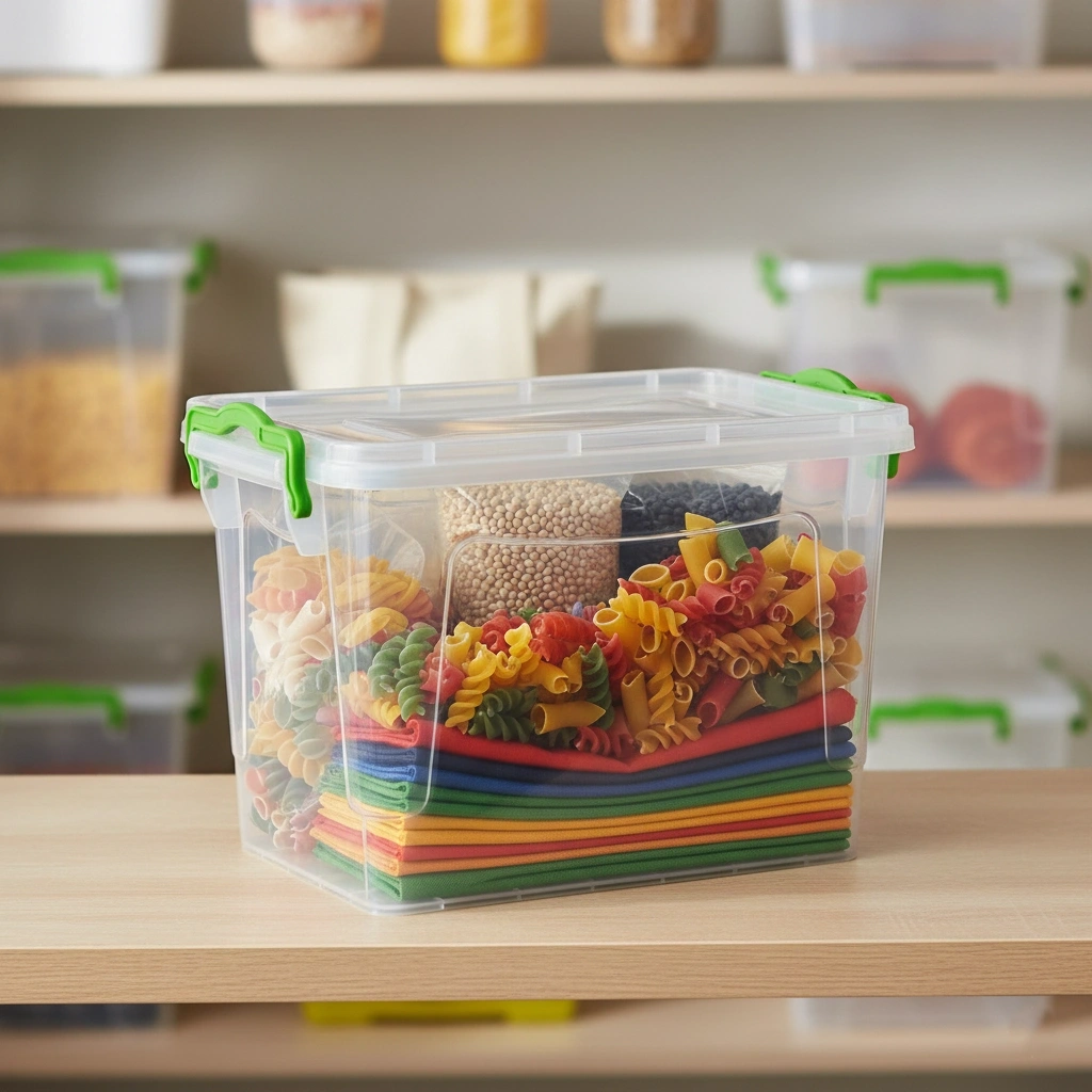 DERİN SAKLAMA KUTUSU 4.5 LİTREÜrün ÖzellikleriPratik kullanımıyla mutfak, banyo ve ofislerde düzenin vazgeçilmezi olan Derin Saklama Kutusu 4.5 Litre, 18x17x25,5 cm boyutlarıyla geniş bir hacim sunar. Gıdalar, temizlik ürünleri veya çeşitli eşyalar için ideal bir saklama çözümü sağlar.Tamamen şeffaf tasarımı, içindekileri kolayca görmenizi sağlar. Yeşil kilitli klips kapağı, hava geçirmez özelliğiyle ürünlerinizi taze ve hijyenik bir şekilde muhafaza eder. BPA içermeyen kaliteli plastikten üretilmiştir ve gıda ile temasa uygundur.Derin yapısı sayesinde daha fazla depolama alanı sunar ve istiflenebilir özelliği ile dolaplarda yerden tasarruf sağlar. Dayanıklı malzemesiyle uzun süreli kullanım imkânı sunar. Bulaşık makinesinde yıkanabilir, dondurucu ve buzdolabında güvenle kullanılabilir.Paket İçeriği1 adet 4.5 litrelik derin saklama kutusu