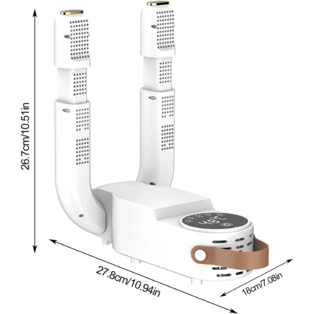 DİJİTAL AYAKKABI KURUTMA VE ISITMA MAKİNESİÜrün ÖzellikleriTeknoloji ve konforu bir araya getiren Dijital Ayakkabı Kurutma ve Isıtma Makinesi, ayakkabılarınızı kısa sürede hijyenik bir şekilde kurutur ve istenmeyen kokuları ortadan kaldırır. Eşsiz ısı dağılımı sağlayan gözenekli tasarımı sayesinde 360° sıcak hava sirkülasyonu oluşturur, böylece ayakkabı ve çoraplarınızı eşit şekilde kurutur.Dijital ekran üzerinden sıcaklık ve süre ayarı yapılabilir, bu sayede hassas kumaşlı ayakkabılar güvenle kurutulabilir. Sessiz çalışmasıyla rahatsızlık vermez ve enerji tasarrufludur. Sadece ayakkabılar değil, eldiven, bere ve çorap gibi eşyalar için de kullanılabilir. 27.8x26.7x18 cm boyutuyla kompakt tasarımıyla kolay taşınabilir ve yer kaplamaz.Paket İçeriği1 adet Dijital Ayakkabı Kurutma Ve Isıtma Makinesi