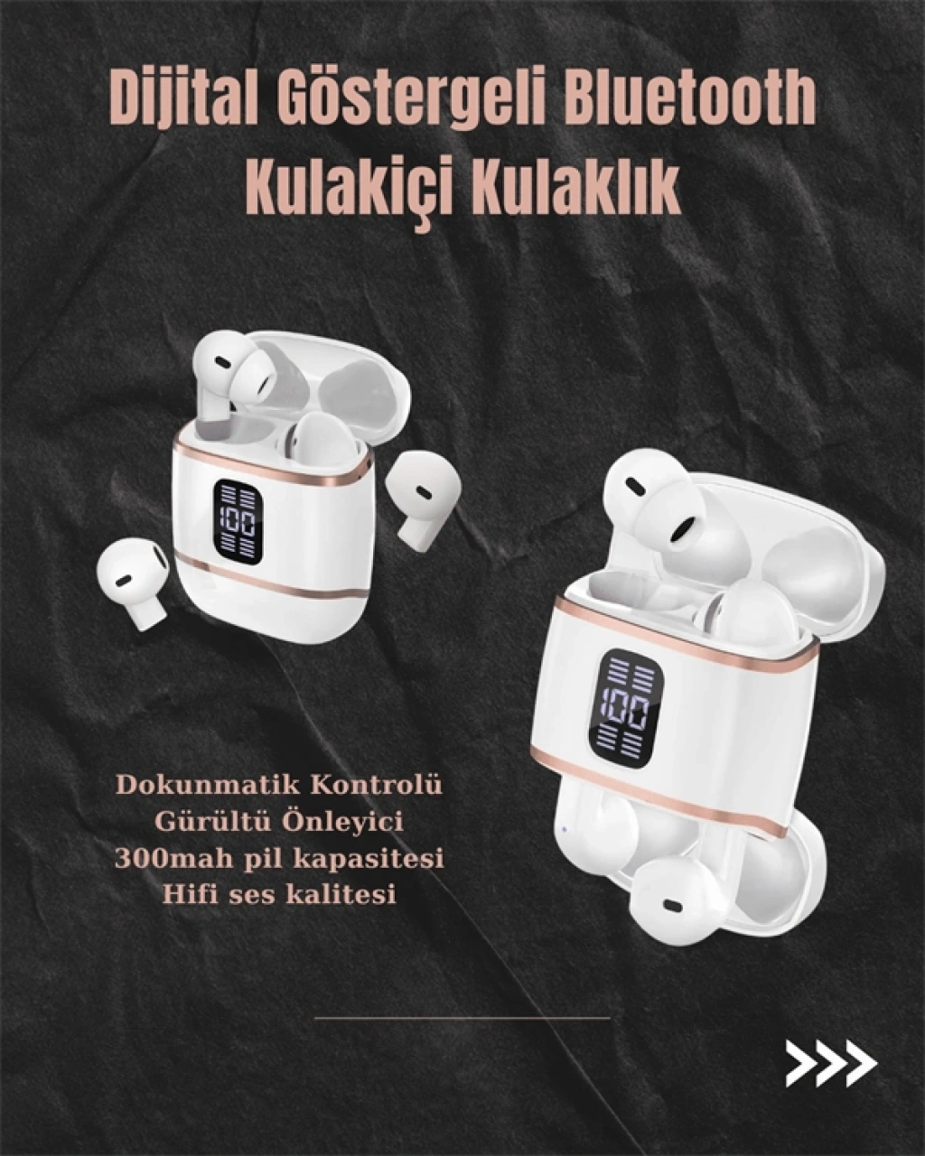 Nevamel® Dijital Göstergeli Bluetooth Kulakiçi Kulaklık – 4’lü Paket Gürültü Engellemeli