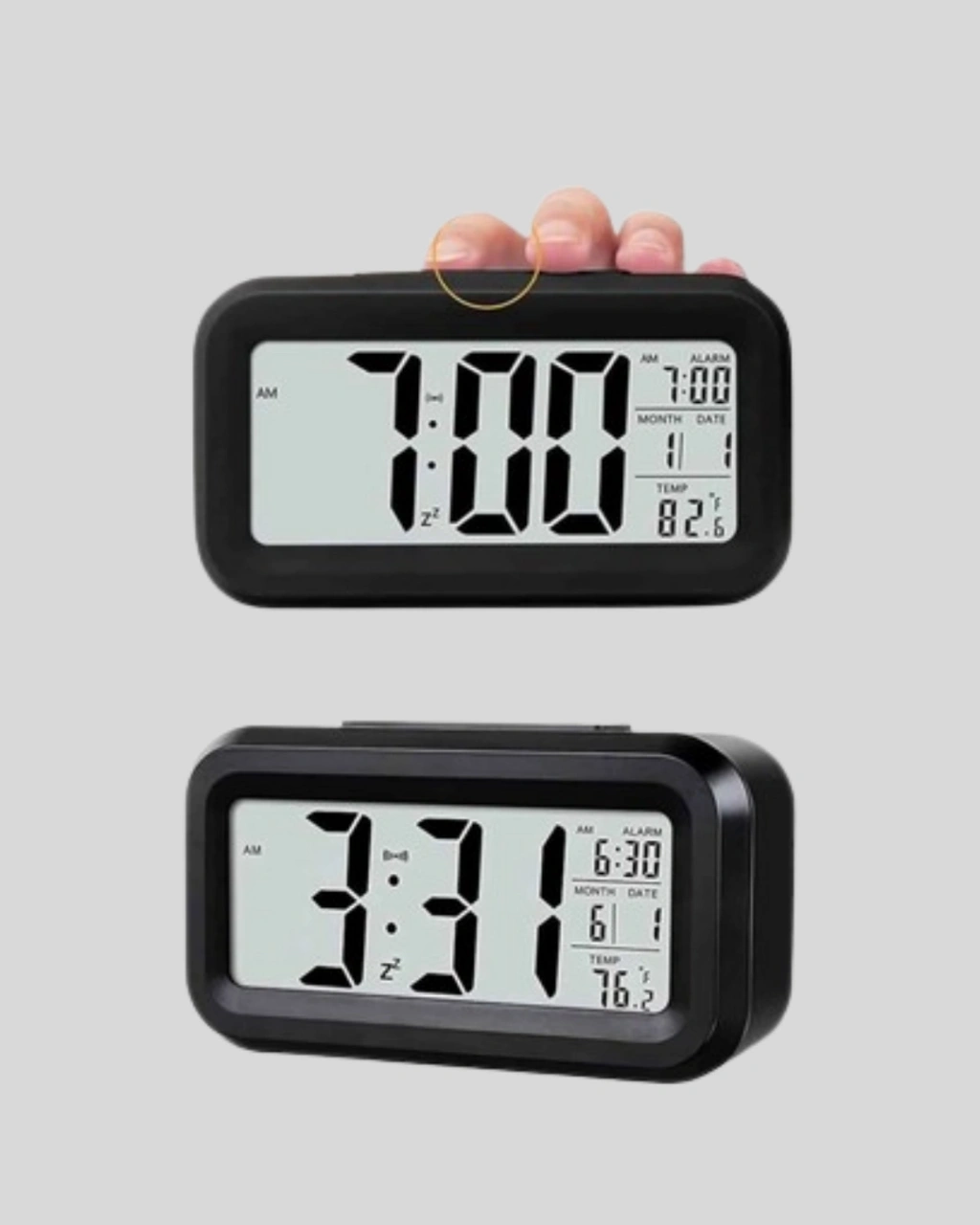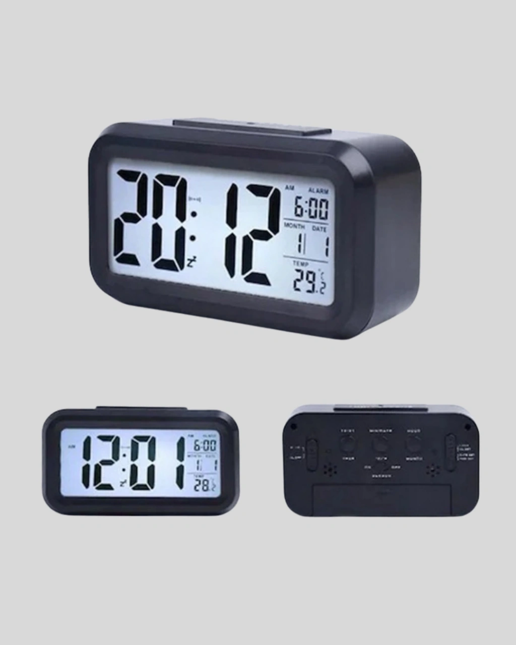 Sensörlü Dijital Masa Saati, hem estetik hem de fonksiyonel özellikleriyle modern yaşam alanlarına pratiklik katar.Büyük dijital ekranı sayesinde zamanı, tarihi ve ortam sıcaklığını kolayca takip edebilirsiniz.Fotosel sensörü, ortam ışığına göre ekran parlaklığını otomatik ayarlayarak hem enerji tasarrufu hem de kullanım konforu sağlar.Manuel LED ışık butonu, karanlıkta ekranı kısa süreli aydınlatarak gece kullanımlarını kolaylaştırır.6 saniyelik otomatik kapanma süresi, göz yorgunluğunu önler ve pilden tasarruf sağlar.Alarm özelliği, sabahları zamanında kalkmanızı sağlarken, sıcaklık göstergesi yaşam alanınızın konforunu ölçer.Kompakt yapısı (4,3 x 15,1 x 7,7 cm) sayesinde masa üzerinde fazla yer kaplamaz.3 adet AA pil ile çalışır ve taşınabilirliği sayesinde kablo karmaşasına gerek bırakmaz.Ev, ofis ve çalışma alanlarında şık bir tamamlayıcı olarak öne çıkar.Tek cihazda hem zaman yönetimi hem de modern tasarım arayanlar için mükemmel bir seçimdir.