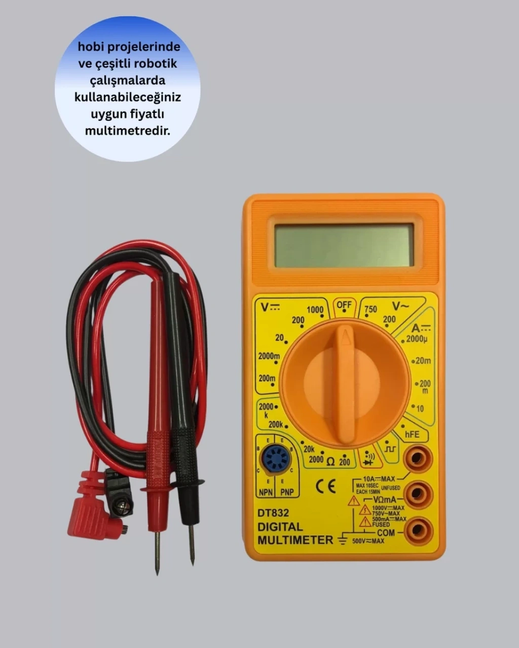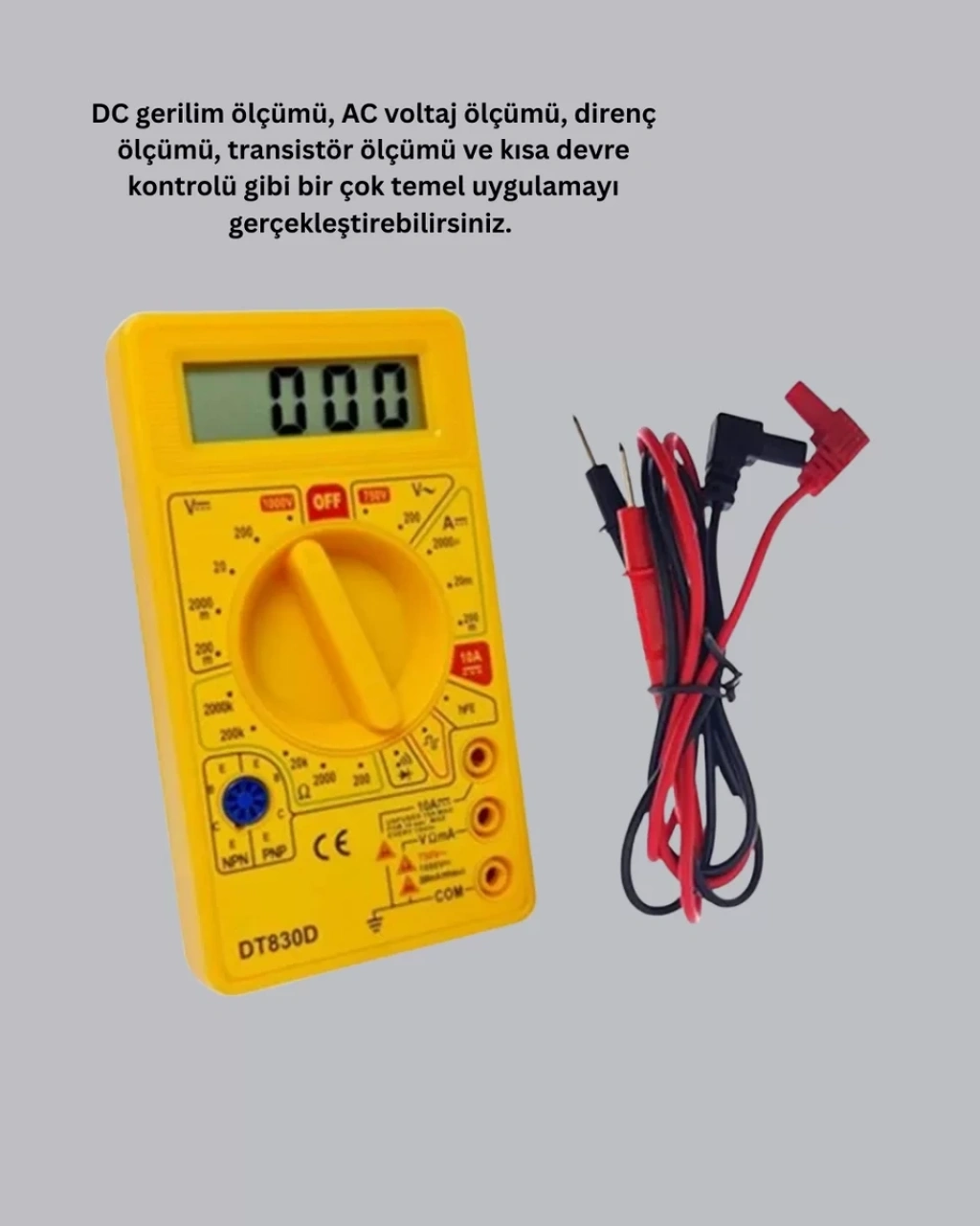 Dijital multimetre ölçü aleti, elektrik ve elektronik işlemlerinde doğru ve güvenilir ölçüm yapmak isteyen kullanıcılar için tasarlanmıştır. AC ve DC ölçüm desteği sayesinde alternatif akım ve doğru akım değerlerini kolayca kontrol etmenize yardımcı olur. Evde yapılan küçük elektrik kontrollerinden profesyonel atölye çalışmalarına kadar geniş bir kullanım alanı sunar.LCD ekranlı yapısı, ölçüm sonuçlarının net ve okunabilir şekilde görüntülenmesini sağlar. Büyük ekran tasarımı sayesinde düşük ışık koşullarında bile değerleri rahatlıkla takip edebilirsiniz. Kullanımı kolay döner anahtar sistemi, ölçüm türleri arasında hızlı geçiş yapılmasına imkân tanır ve pratik bir kullanım deneyimi sunar.10 amper ölçüm kapasitesi, cihazı standart ev elektriği ve birçok teknik uygulama için uygun hale getirir. Gerilim, akım ve direnç ölçümlerini tek bir cihaz üzerinden gerçekleştirme avantajı sağlar. Elektrik tesisat kontrolü, priz ve kablo testleri, elektronik devre kontrolleri gibi birçok alanda kullanılabilir.Dayanıklı gövde yapısı, düzenli ve uzun süreli kullanım için uygundur. Darbelere karşı dirençli tasarımı sayesinde güvenli bir kullanım sunar. Taşınabilir yapısı, cihazın çanta içinde kolayca taşınmasını sağlar ve sahada kullanım için ideal bir çözüm sunar.Dijital multimetre, hem amatör kullanıcılar hem de teknik işlerle ilgilenen profesyoneller için pratik ve işlevsel bir ölçüm cihazıdır. Elektrik ölçümlerini daha kontrollü ve güvenli şekilde yapmak isteyenler için vazgeçilmez bir yardımcıdır.