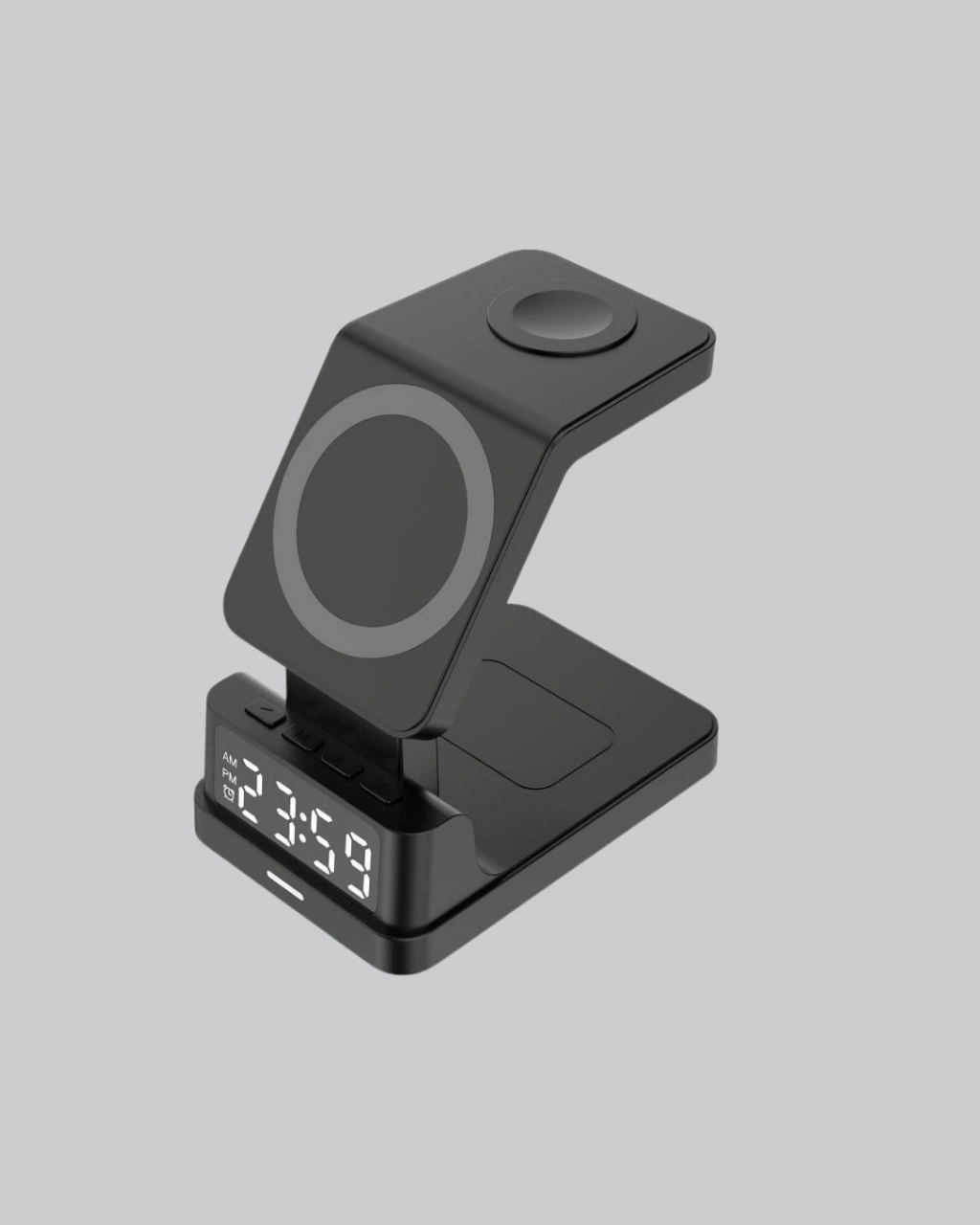Tek bir cihazla hem telefonunuzu hem kulaklığınızı hem de akıllı saatinizi şarj edin!Bu dijital saatli kablosuz şarj istasyonu, modern yaşamın hızına ayak uydurmak için tasarlandı. Üzerindeki dijital ekran, 3 kademeli parlaklık ayarı ve 12/24 saat formatı ile işlevselliği estetikle buluşturur.3’ü 1 arada kablosuz şarj özelliği sayesinde iPhone, Apple Watch ve AirPods cihazlarınızı aynı anda şarj edebilirsiniz.İçerisinde yer alan akıllı çip, cihazı otomatik algılayarak ideal şarj gücünü uygular ve aşırı ısınma, kısa devre ve aşırı gerilim gibi durumlara karşı koruma sağlar.Yanmaz ABS malzeme kullanımı, uzun ömürlü ve güvenli bir yapı sunar.Bellek pili sayesinde elektrik kesilse bile saatiniz zaman ayarını kaybetmez.Kompakt ve zarif tasarımıyla hem ev hem ofis ortamında şık bir aksesuar görevi görür.Ayrıca kutu içeriğinde QC 3.0 adaptör, Type-C kablo ve kullanıcı kılavuzu bulunur.Hem fonksiyonel hem de dekoratif bu ürün, Babalar Günü, doğum günü veya yılbaşı için mükemmel bir hediye seçeneğidir.