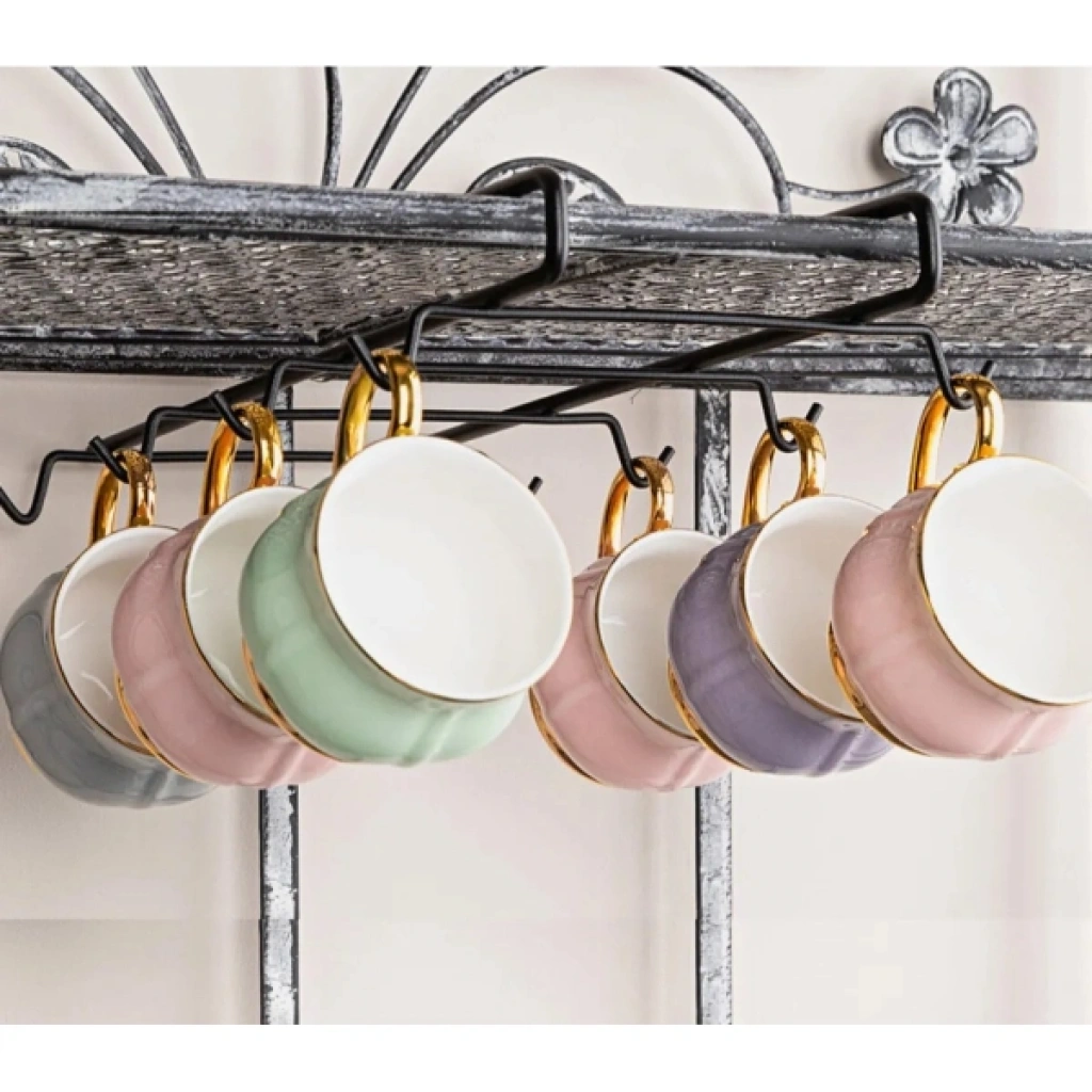DOLAP İÇİ FİNCANLIK ASKIÜrün ÖzellikleriDolap içi fincanlık askı, mutfak düzeninizi pratik ve estetik şekilde organize etmenize yardımcı olur. 10 adet kancası sayesinde fincanlarınızı güvenli şekilde asabilir, dolap altı veya raf gibi yüzeylere kolayca takarak yer tasarrufu sağlayabilirsiniz. Metal malzemeden üretilmiş olan bu askılık, sağlam yapısı ile uzun ömürlü kullanım sunar. Dolap veya raf altına delme işlemi yapmadan kolayca monte edilir ve mutfaklarınıza şıklık katar. Tüm standart boyutlardaki kulplu fincanlarla uyumludur.Paket İçeriği1 Adet Dolap İçi Fincanlık Askı