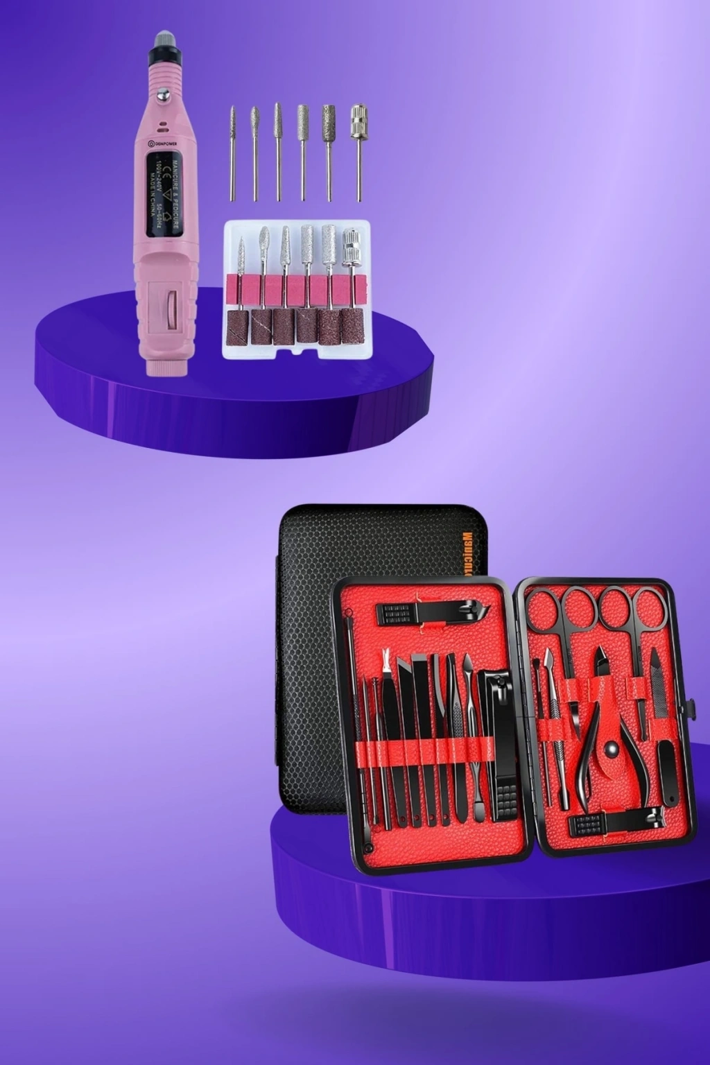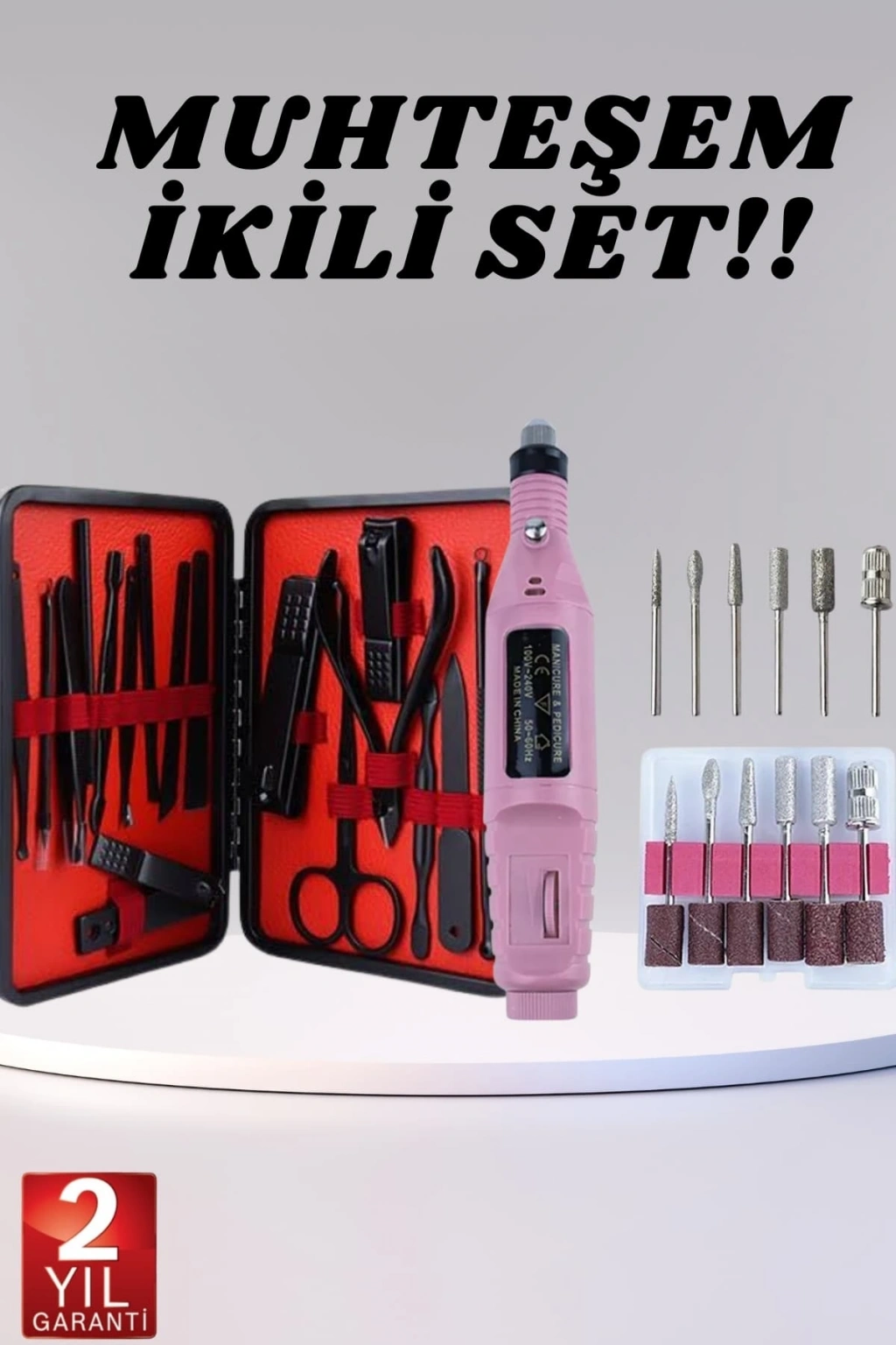 Nevamel Elektrikli Manikür Pedikür Seti İkili Set 17 Parça Tırnak Bakımı Nasır Temizleme Tırnak Şekillendirme
