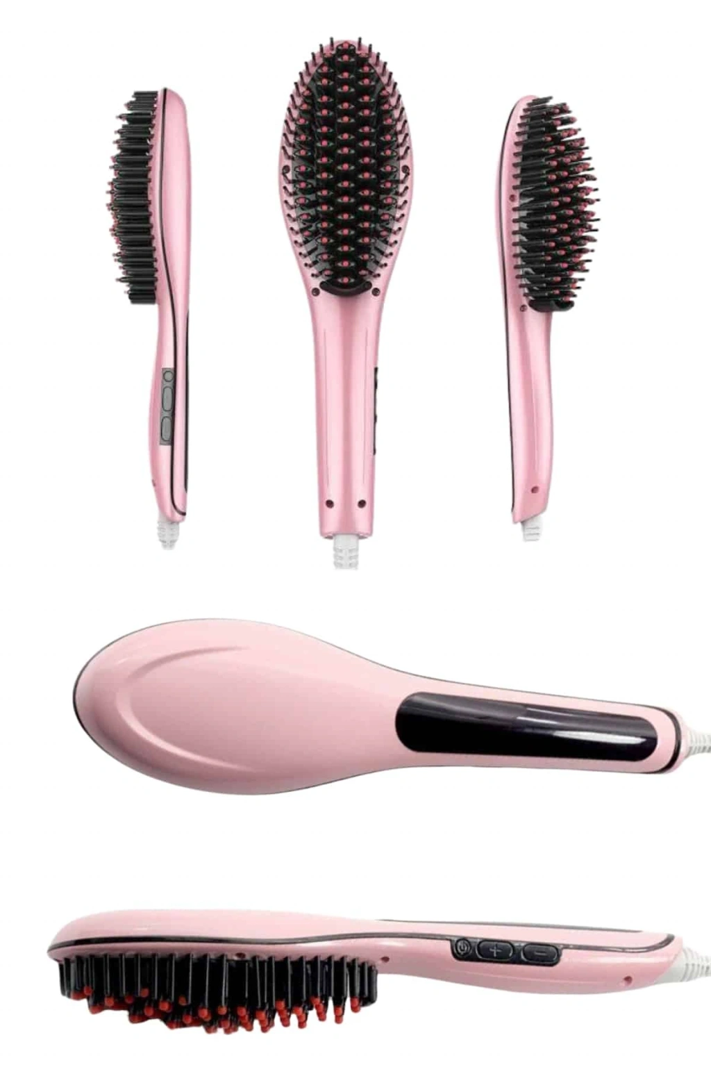 Nevamel Elektrikli Saç Düzleştirici Tarak Saç Düzleştirici Fırça Sıkı Dişli Pembe
