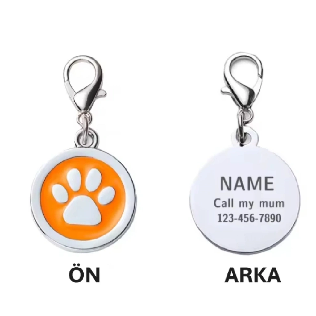 EVCİL HAYVAN KLİPSLİ TASMA KÜNYESİÜrün ÖzellikleriEvcil Hayvan Klipsli Tasma Künyesi, 2.5 cm boyutuyla hem hafif hem de dayanıklı bir yapıya sahiptir. Ön yüzünde sevimli patili tasarım bulunurken, arka yüzü tamamen boştur ve isteğinize göre isim, telefon numarası veya özel bir notla kolayca özelleştirilebilir. Klips mekanizması sayesinde tüm kedi ve köpek tasmalarına hızlıca takılabilir. Kaybolma riskine karşı güvenli bir çözüm sunar ve şık tasarımıyla evcil hayvanınızın tasmasına zarif bir dokunuş katar.Paket İçeriği1 adet Klipsli Tasma Künyesi