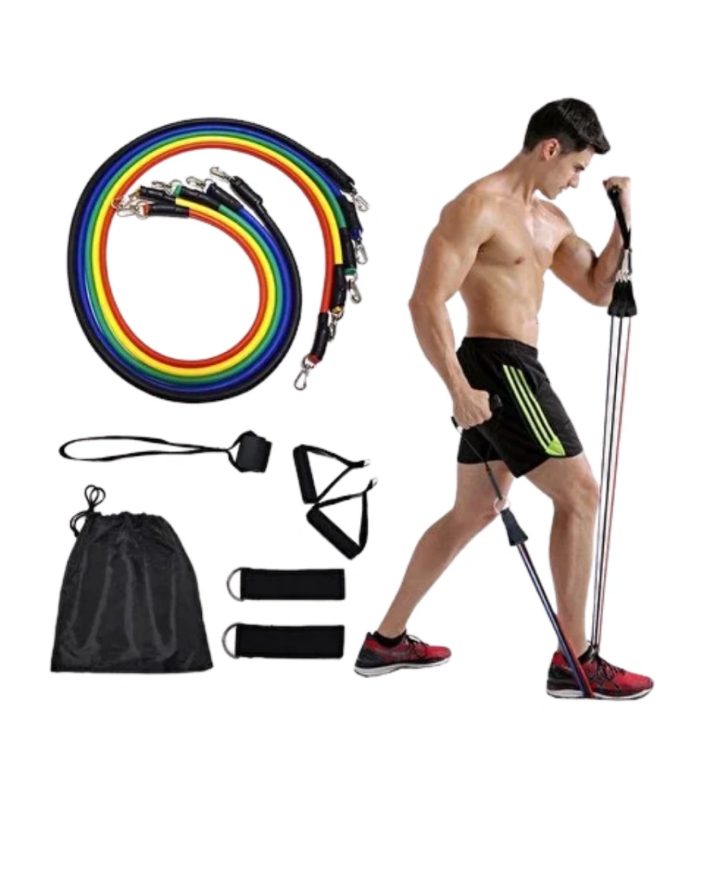 Ev tipi spor ekipmanları arasında öne çıkan bu direnç bandı seti, çok yönlü kullanım avantajı sunar. Pilates, fitness, kuvvet antrenmanı ve rehabilitasyon egzersizleri için idealdir. Farklı direnç seviyeleri ile kişisel antrenman programınıza uyum sağlar.Set içerisindeki aksesuarlar sayesinde üst vücut ve alt vücut kas gruplarını dengeli bir şekilde çalıştırabilirsiniz. Kompakt tasarımı ile az yer kaplar, kolayca saklanır. Evde egzersiz yapmak isteyenler için fonksiyonel, ekonomik ve etkili bir çözümdür.