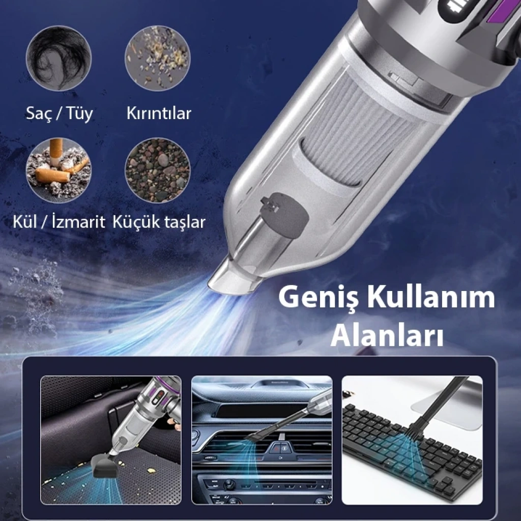 3’ü 1 Arada Fonksiyon: Toz emme, üfleme ve hava çekme özelliklerini tek cihazda birleştirir. Balon, can simidi şişirme veya dar alanlardaki tozu üfleme gibi ek işlevlerle çok yönlü kullanım sağlar.
