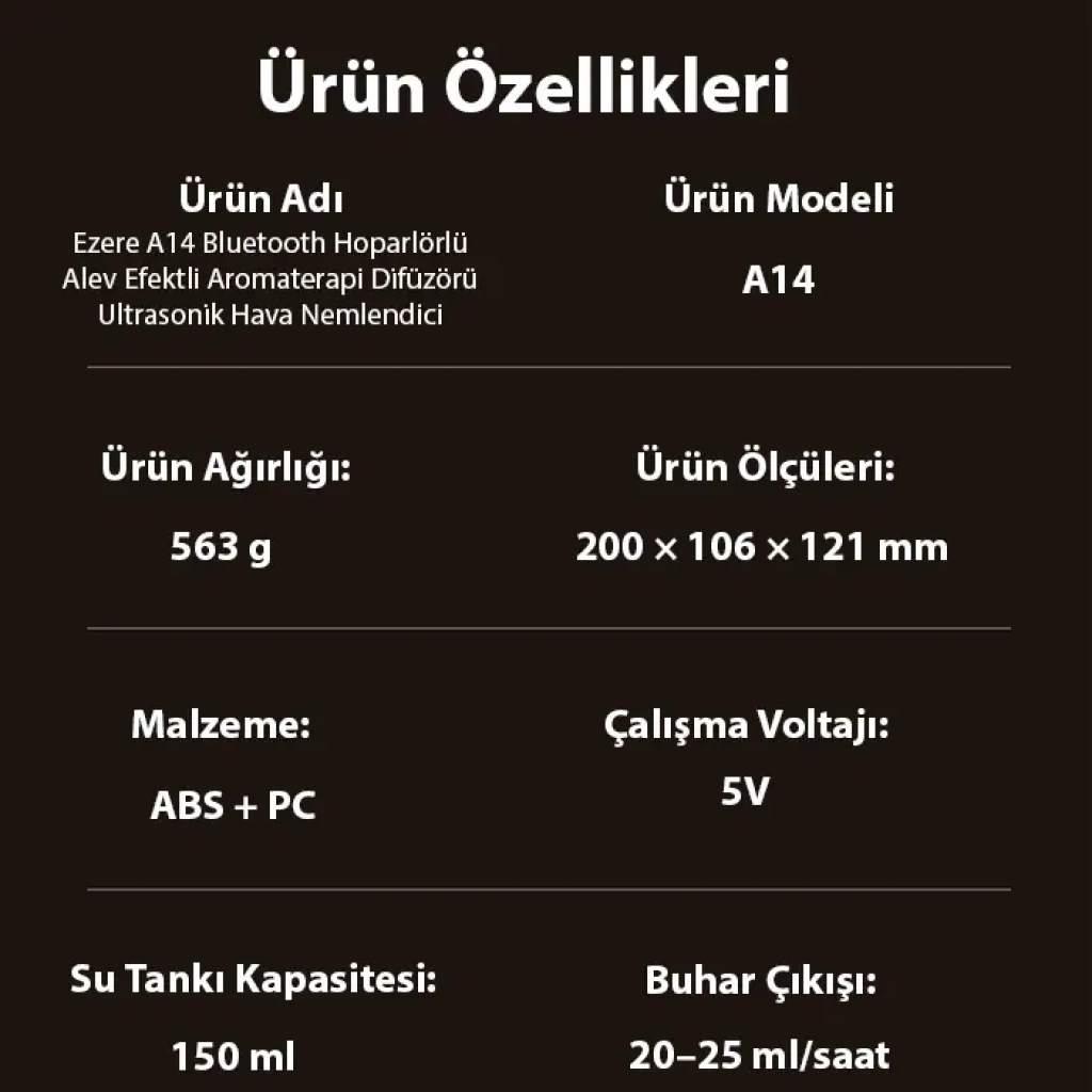 Ürün Adı: Ezere A14 Bluetooth Hoparlörlü Alev Efektli Aromaterapi Difüzörü