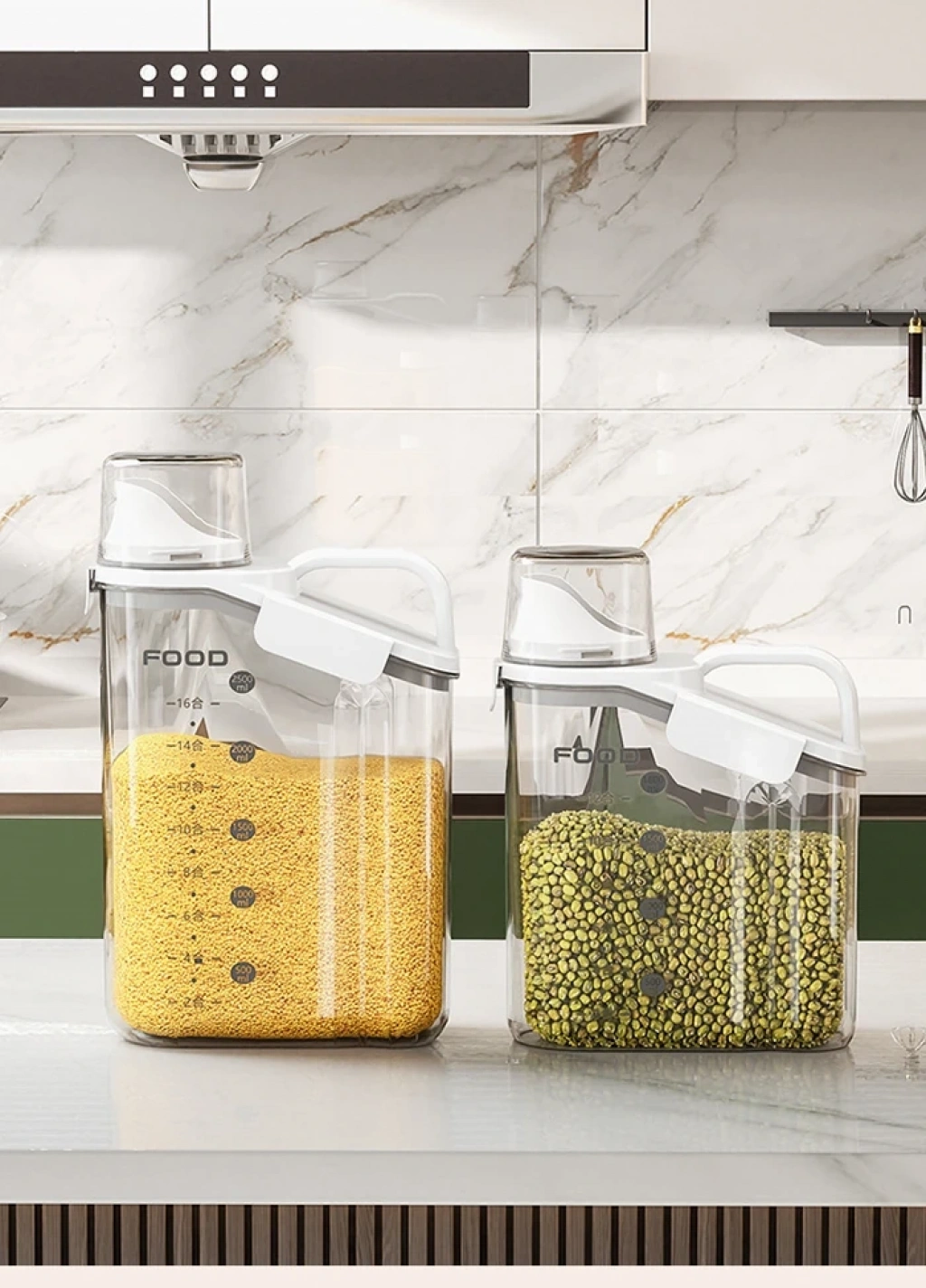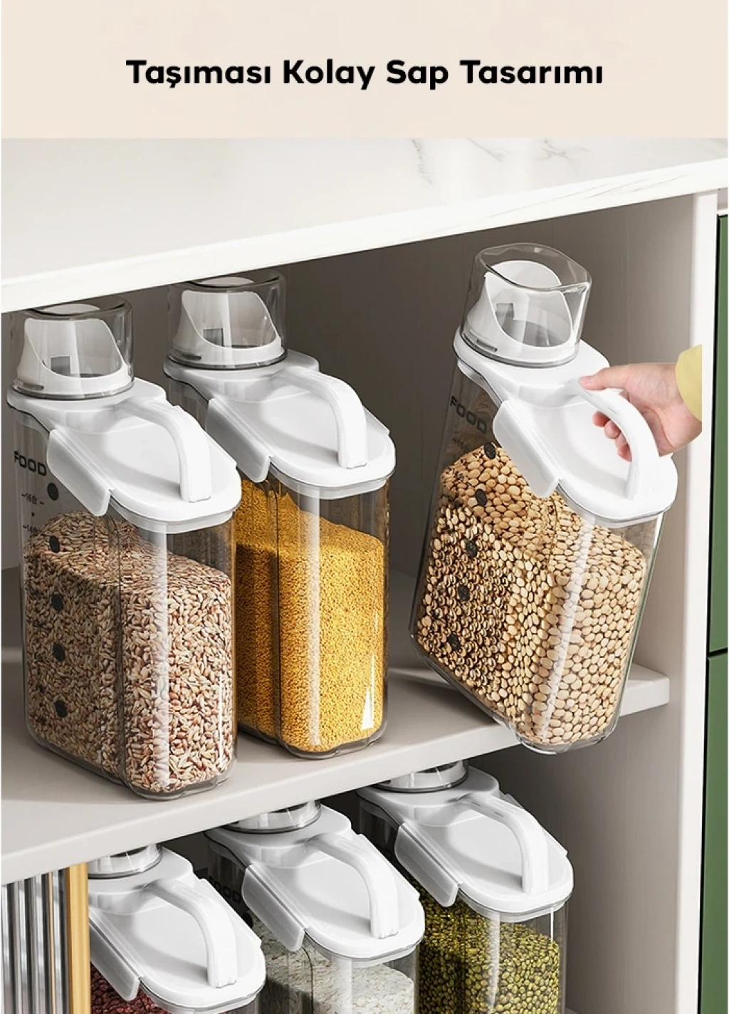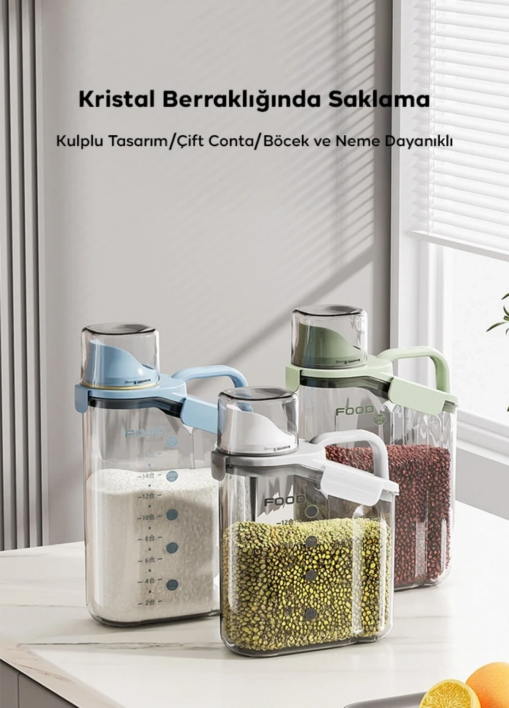 Un, pirinç, fasulye, atıştırmalık, tahıl, evcil hayvan maması vb. gibi gıdaların depolanması için idealdir.,