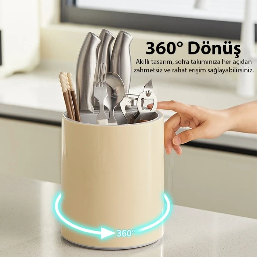 EZERE Çatal - Bıçak - Kaşık Saklama Ve Kurutma Kutusu Dönebilen Mutfak Düzenleyici
