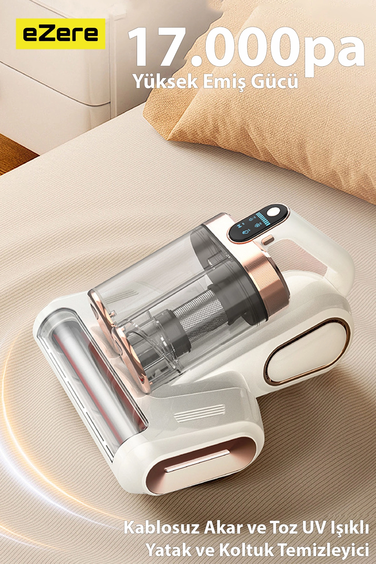 Ezere DustAway 17000Pa Güçlü Kablosuz Akar ve Toz UV Işıklı Yatak ve Koltuk Temizleyici