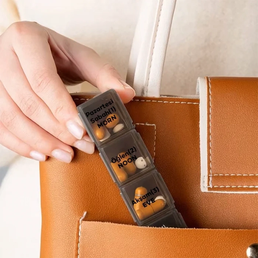 Taşıması Kolay: Taşınabilir, kompakt ve hafif olacak şekilde tasarlanmış bir çantada taşınabilen hap düzenleyicimizin rahatlığının keyfini çıkarın.Günlük takviyelerinizi rahatça düzenleyin.