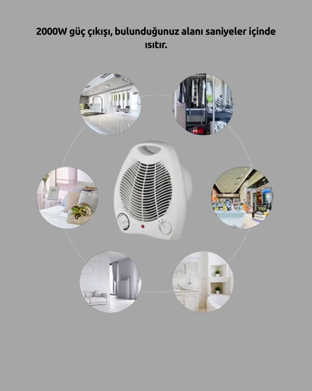 Evinizi, ofisinizi veya çalışma alanınızı saniyeler içinde ısıtın! 2000W fanlı elektrikli ısıtıcı, güçlü performansı ve güvenli tasarımıyla soğuk havalarda ideal bir çözümdür.2000W güç çıkışı, kısa sürede etkili ısı sağlar. Üç modlu sistem (soğuk, sıcak ve çok sıcak) sayesinde hem yaz hem kış aylarında kullanabilirsiniz. Termostatlı ısı kontrolü, ortam sıcaklığına göre otomatik ayarlama yapar.ABS + PP malzeme gövdesi, yüksek sıcaklıklara karşı dayanıklıdır. Mini boyutu (22x14x26 cm) sayesinde her yere kolayca taşınabilir ve kompakt alanlarda rahatlıkla kullanılabilir. 10 m²’ye kadar kapsama alanı, küçük odalar, ofis masaları veya araç içi kullanım için idealdir.Güçlü fan sistemi, sıcak havayı eşit şekilde dağıtır ve ortamın homojen şekilde ısınmasını sağlar. Aşırı ısınma koruması, güvenliği maksimum düzeyde tutar; sıcaklık limitine ulaşıldığında cihaz otomatik kapanır.Kullanımı basittir: Güç kablosunu takın, anahtar düğmesini “ON” konumuna getirin ve termostat ayarını çevirerek dilediğiniz sıcaklığı belirleyin. Isı seviyesi sabit kalır ve otomatik olarak dengelenir.Enerji tasarruflu motoru, optimum güç tüketimiyle maksimum ısı performansı sunar. Sessiz çalışma teknolojisi, özellikle uyku veya çalışma sırasında konfor sağlar.Modern tasarımı, pratik boyutu ve güvenli kullanım özellikleriyle 2000W Elektrikli Isıtıcı, hem ev hem ofis ortamlarında vazgeçilmez bir ısıtma çözümüdür.