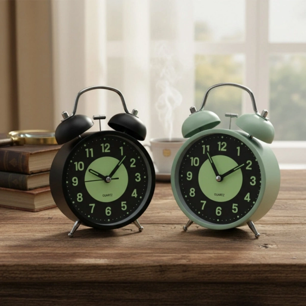 FOSFORLU METAL ÇALAR SAATÜrün ÖzellikleriFosforlu Metal Çalar Saat, klasik tasarımı modern gece görüş teknolojisiyle buluşturarak uykularınızı bölmeden zamanı takip etmenizi sağlıyor. 11 cm boyutundaki sağlam metal gövdesi ve ikonik ikiz çan (kulaklı) yapısıyla hem nostaljik bir hava estirir hem de dayanıklı bir kullanım sunar. Bu metal masa saati, en önemli özelliği olan fosforlu kadran yapısı sayesinde gün ışığını depolar ve karanlıkta ek bir ışığa ihtiyaç duymadan saati görebilmenize olanak tanır. Ayrıca, tamamen karanlık ortamlar için butona basıldığında yanan entegre gece ışığı fonksiyonu da mevcuttur. Güçlü alarm mekanizması ile en derin uykulardan bile tam vaktinde uyanmanızı garanti eder. Pilli çalışma sistemi sayesinde kablo derdi olmadan her yerde kullanılabilir. Mat siyah ve nane yeşili renk seçenekleriyle sunulan bu modern çalar saat, kontrast renkli büyük rakamları sayesinde gün içinde de mükemmel okunabilirlik sunar. Yatak odası komodinleri, çalışma masaları veya ofisler için ideal olan bu ürün, hem işlevsel bir zaman takipçisi hem de şık bir dekoratif obje olarak sevdikleriniz için harika bir hediyelik eşya alternatifidir.Ürün Teknik ÖzellikleriÖzellikAçıklamaÜrün AdıFosforlu Metal Çalar SaatBoyut11 cm (Çap)MalzemeYüksek Kaliteli Metal Kasa ve İkiz Çan MekanizmasıKadran ÖzelliğiFosforlu Gece Görüşlü YüzeyFonksiyonGüçlü Çalar Saat (Alarm) ve Manuel Gece IşığıGüç KaynağıPilli (Standart pil ile çalışır)Renk SeçeneğiSiyah ve Yeşil (Görseldeki renklerden biri karışık gönderilir)Paket İçeriği1 Adet Fosforlu Metal Çalar Saat
