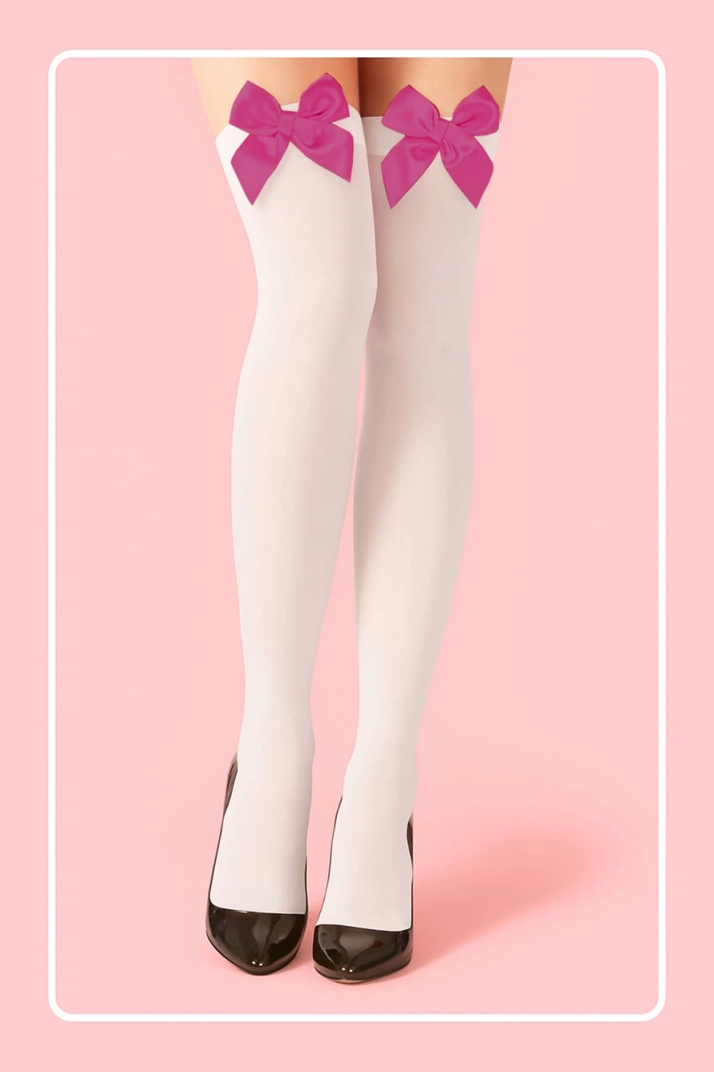 Nevamel® Fuşya Fiyonklu Beyaz Jartiyer Çorabı TM1379