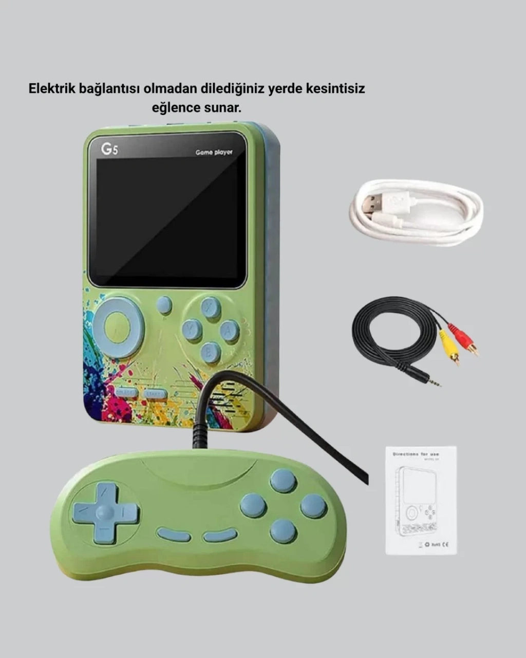 G5 Taşınabilir Retro Oyun Konsolu, klasik oyun kültürünü yeniden canlandıran çok yönlü bir eğlence cihazıdır. Hafızasında bulunan 500 adet efsanevi oyun, geçmişin en sevilen anlarını bugüne taşır. Aksiyon, spor, yarış, bulmaca ve macera oyunları ile her yaşa hitap eder.3 inç HD dijital ekran, yüksek renk doğruluğu ve net görüntü sunar. Arka aydınlatmalı ekran sayesinde ister gündüz ister gece, her ortamda kesintisiz oyun keyfi yaşayabilirsiniz. 600 mAh şarj edilebilir batarya, 3 saate kadar kesintisiz oynama süresi sağlar. USB kablo ile hızlıca şarj edilebilir. Kompakt ve hafif yapısı sayesinde her yere rahatça taşınabilir. Hem ergonomik tasarımı hem de uzun pil ömrüyle seyahatlerde ideal bir eğlence arkadaşıdır.G5 Game Box, doğum günü veya özel gün hediyesi olarak çocuklara harika bir hediye sunar. Hem erkek hem kız çocuklarının ilgisini çekecek renkli tasarımı ve kolay kullanımı ile evde, okulda veya tatilde oyun keyfini her an yaşatır.