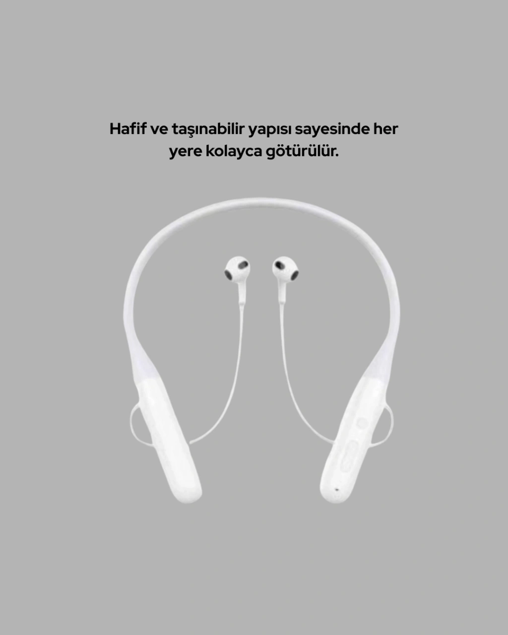 Günlük yaşamınızı kolaylaştıracak bu kablosuz kulaklık, tek şarjla 100 saate kadar kullanım sunan güçlü bataryasıyla öne çıkar. Boyun askılı tasarımı sayesinde kulaktan düşmez, uzun süreli kullanımda bile konfor sağlar. Bluetooth bağlantısı hızlıdır ve akıllı telefon, tablet, bilgisayar gibi cihazlarla saniyeler içinde eşleşir. Ses performansı güçlü baslar, net tizler ve dengeli tonlamasıyla profesyonel bir deneyim sunar. Kulak içi ergonomik yapısı sayesinde dış sesleri engeller ve odaklanmanıza yardımcı olur. Manyetik başlıkları sayesinde kullanılmadığında kulaklık uçları birbirine yapışır, bu da kolay taşınabilirlik sağlar. Hafif ve şık tasarımıyla her ortamda rahatlıkla kullanılabilir. USB şarj desteğiyle kolayca doldurulabilir ve uzun süre güvenle kullanılabilir. Spor, seyahat, iş ya da günlük yaşam için ideal bir seçimdir.