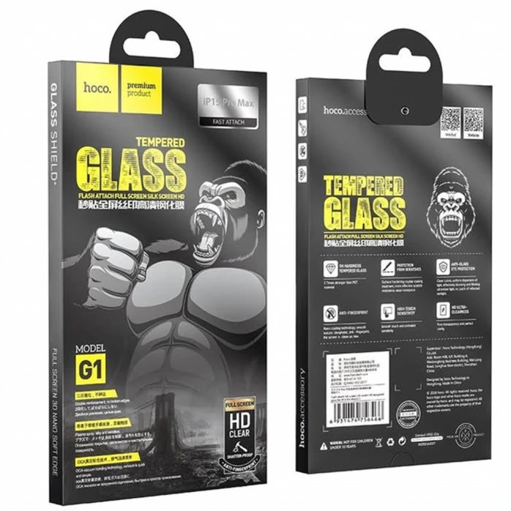 HOCO iPhone 15 Pro Max Full Screen HD Tempered Kırılmaz Cam Ekran Koruyucu