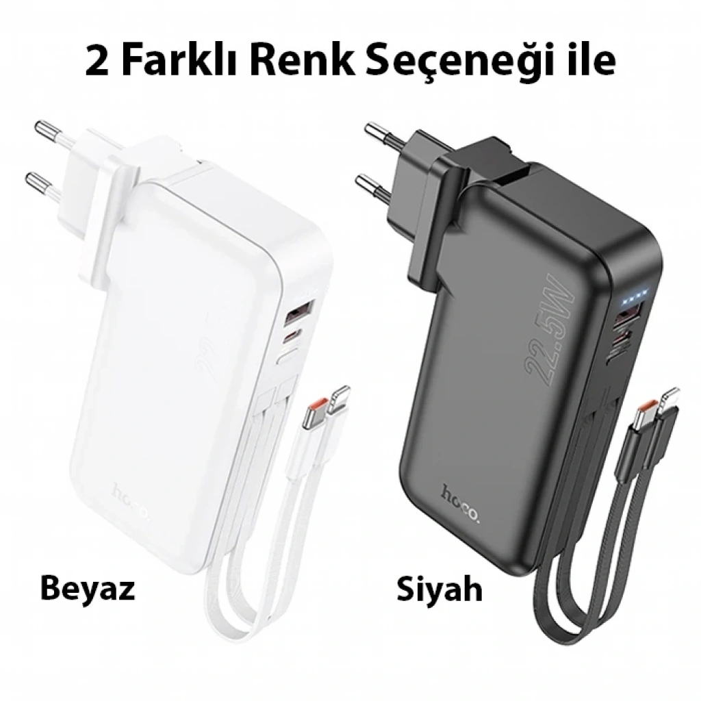 Hoco J126 USB-A+Type-C Çıkışlı Type-c+Lightning Kablolu 10000mAh Powerbank Şarj Aleti