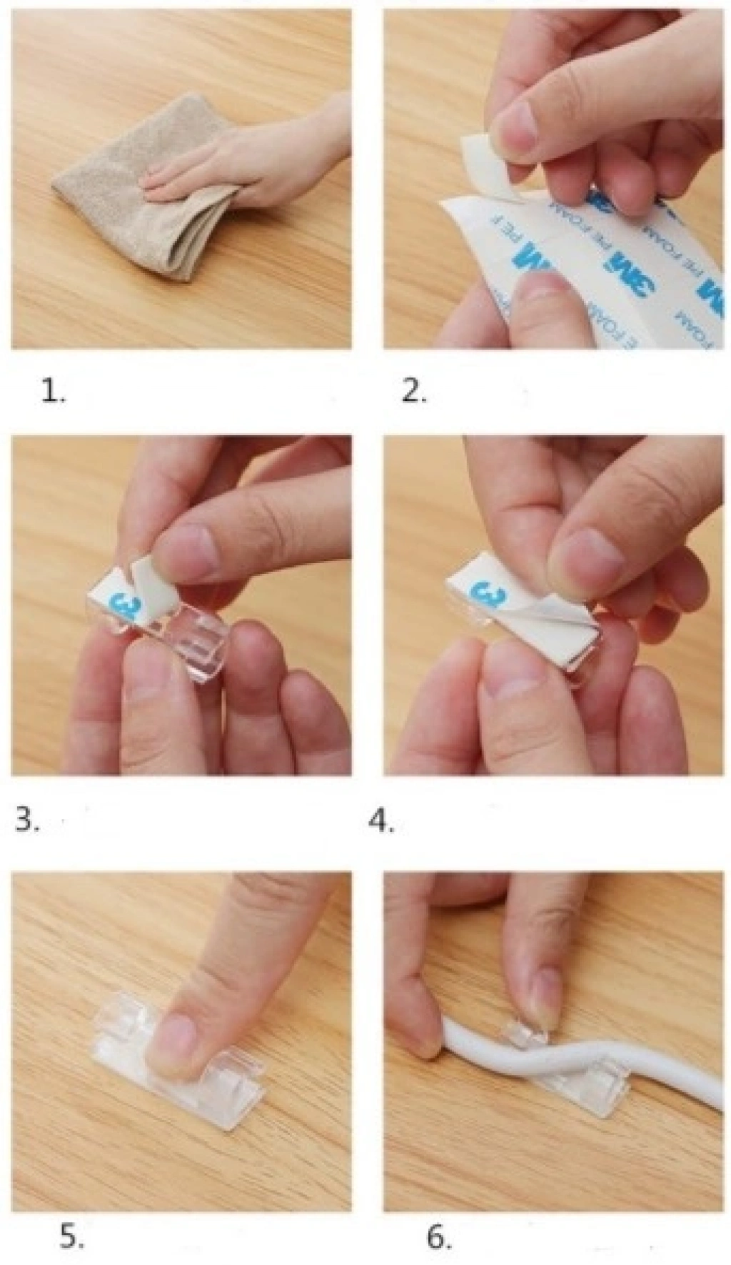 KABLO SABİTLEYİCİ KLİPS SETİ 20 ADET Montaj yüzeyinin temiz ve kir, toz, yağ ve balmumu içermediğinden emin olun.Yüzeyi silin ve yüzeyin tamamen kurumasına izin verin.Yapışkan bandın arkasını çıkarın ve kablo klipsine uygulayın.Kalan desteği çıkarın ve istenen yüzeye yapıştırın. Başparmağınızla kablo kelepçesi üzerindeki baskıyı uygulayın ve 10 saniye boyunca sıkın.Tutkal gerçekten yapılana kadar onlara birkaç dakika boyunca ağırlık koymayın. Kabloları klibe takın ve kilitleyin. Sık sık hareket etmekten kaçının.Paket İçeriği20 adet kablo sabitleyici klips seti