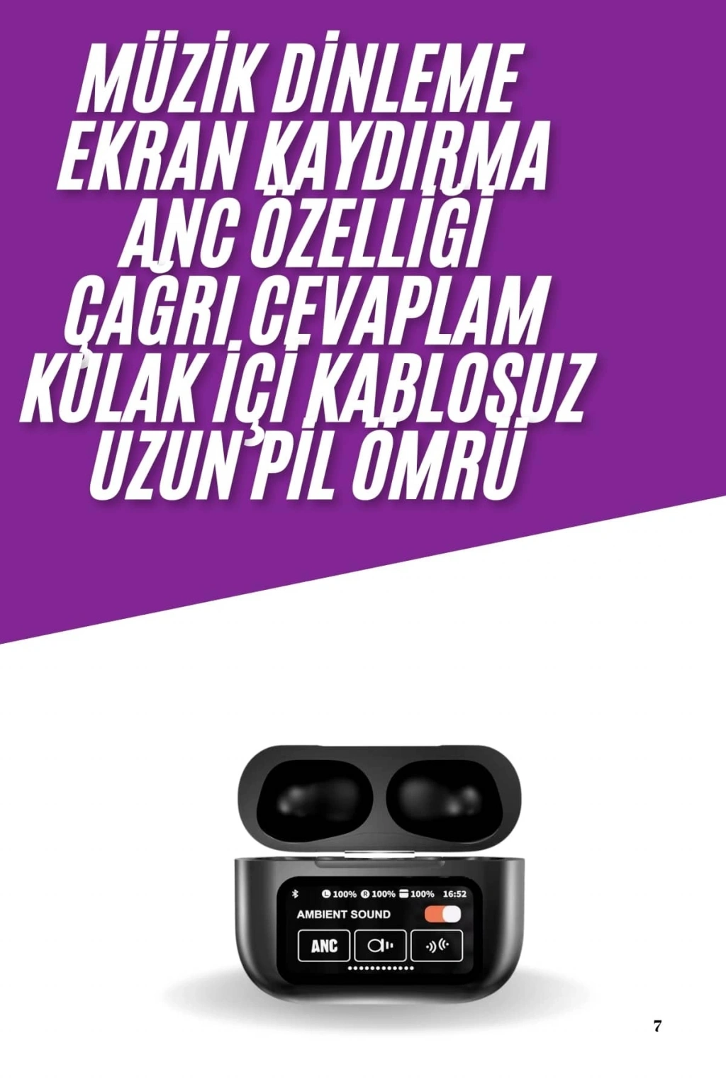 Bu kulaklık, müzik dinlerken veya arama yaparken kusursuz bir deneyim sunuyor. Şarj durumunu ekrandan izleme imkanı sayesinde pil bittiği korkusu olmadan uzun süre kesintisiz kullanım sağlayabilirsiniz. 2. Nesil teknolojisi ile daha konforlu bir kullanım deneyimi sunar; uzun süreli kullanımlarda bile rahatlık sağlar. Şık siyah tasarımı her ortamda stilinizi yansıtırken, dayanıklı yapısı uzun ömürlü kullanım için ideal bir seçenek oluşturur. 2 yıl ithalatçı garantisi ile güvenli bir satın alma deneyimi sunar, olası teknik sorunlarda ise destek almanızı sağlar.Aktif gürültü önleme (ANC) teknolojisi ile dış çevrenin gürültüsünü engelleyerek müzik veya aramalara odaklanmanızı kolaylaştırır. Dahili mikrofonu sayesinde net aramalar yapabilir ve eller serbest konuşma konforunu yaşarsınız. Suya ve tere karşı dayanıklılığı, spor yaparken veya yağmurlu havalarda bile güvenle kullanım imkanı tanır. Bluetooth 5.0 desteği, daha hızlı bağlantılar ve geniş uyumluluk sunar. Karmaşık menülerden kaçınan kullanıcılar için dokunmatik kontrol bulunmaması, müziğinizi ve aramalarınızı kolayca yönetebilmenizi sağlar. Çift telefon desteği ile aynı anda iki cihazla eş zamanlı olarak bağlanma avantajı sunar, böylece çoklu görevleri kolayca yerine getirebilirsiniz.