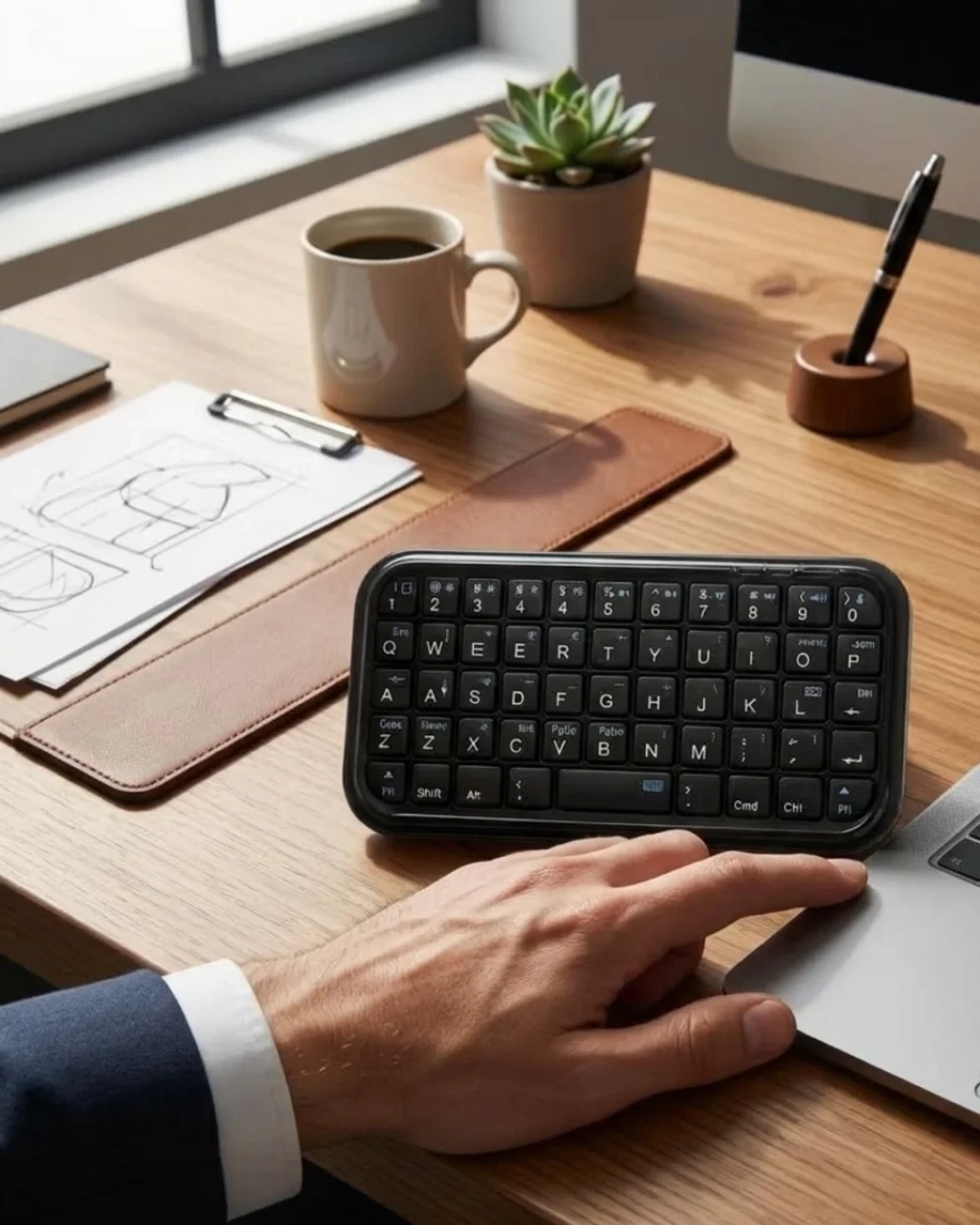 Kablosuz mini bluetooth klavye, telefon ve tablet kullanımını daha pratik hale getiren taşınabilir bir yazı yazma çözümüdür. Bluetooth bağlantı özelliği sayesinde kablo kullanmadan hızlı şekilde cihazınıza bağlanır.Kompakt ve hafif tasarımı sayesinde kolay taşınabilir ve farklı ortamlarda kullanım sağlar. Özellikle mobil cihazlarla yazı yazarken büyük kolaylık sunar.10 metreye kadar bağlantı mesafesi sayesinde cihazınızı uzaktan kontrol edebilir ve rahat kullanım elde edebilirsiniz.USB kablo ile şarj edilebilen dahili batarya sayesinde tekrar tekrar kullanılabilir.