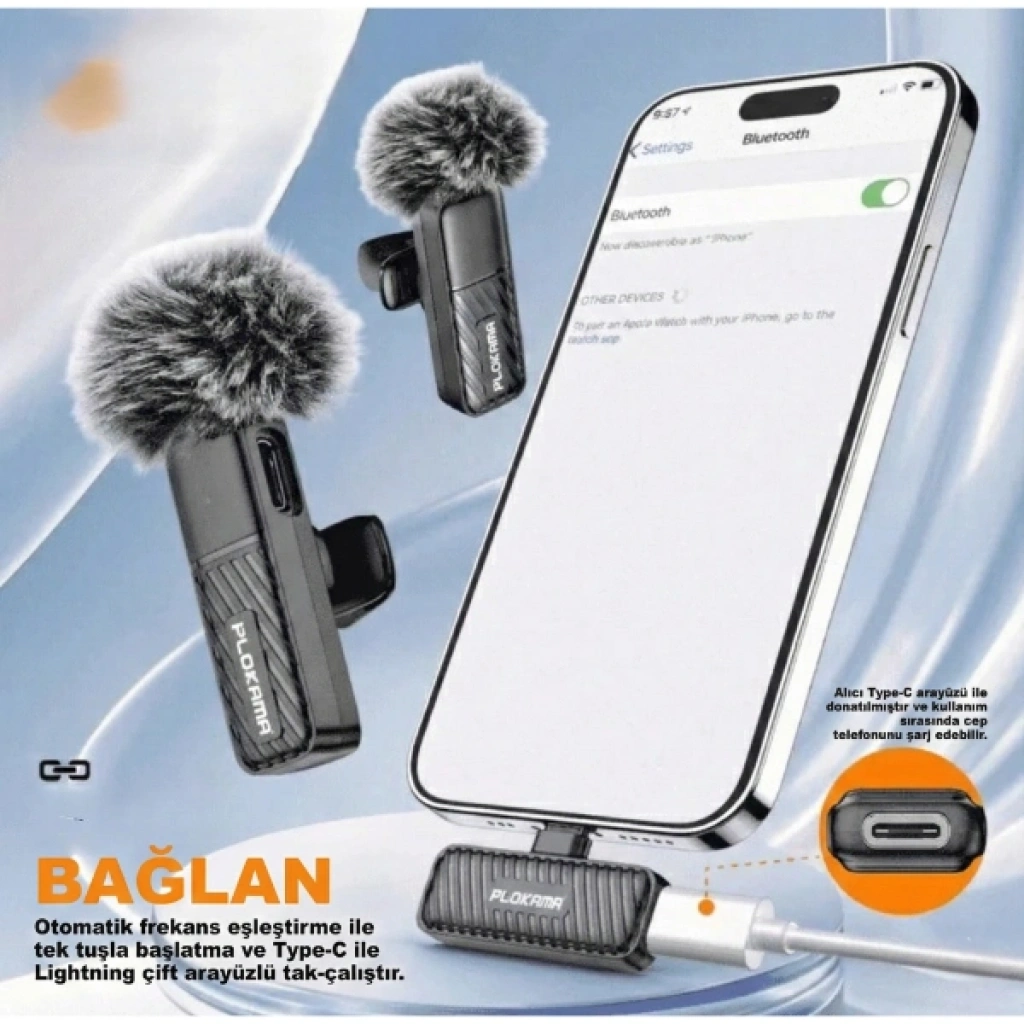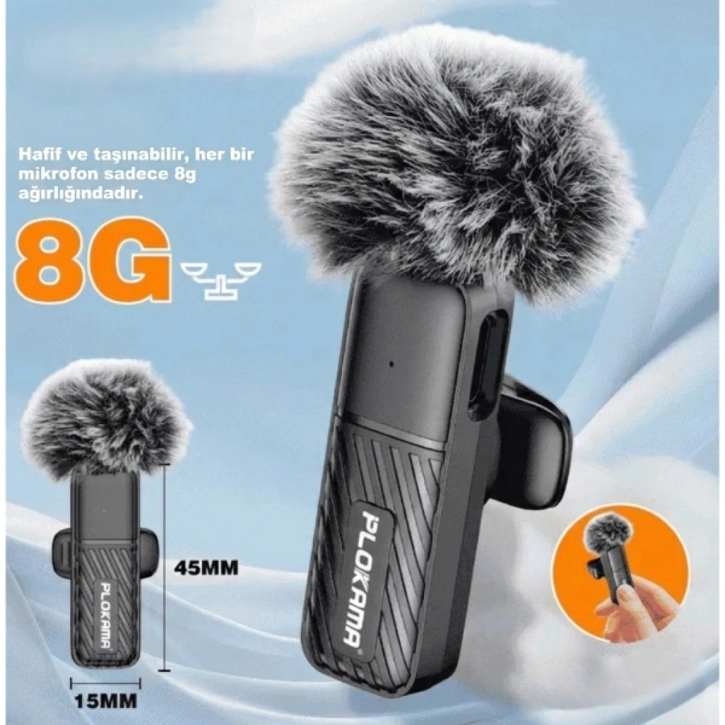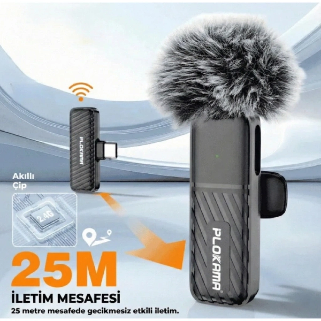 KABLOSUZ TYPE-C YAKA MİKROFONUÜrün ÖzellikleriKablosuz Type-C yaka mikrofonu, içerik üreticileri, sosyal medya kullanıcıları, röportaj yapanlar, eğitim videoları çekenler ve canlı yayın gerçekleştirenler için profesyonel seviyede ses kalitesi sunmak üzere tasarlanmıştır. 2.4G kablosuz bağlantı teknolojisi sayesinde gecikmesiz ve stabil ses iletimi sağlar, kablo karmaşasını tamamen ortadan kaldırır. Type-C girişe sahip Android telefonlar, tabletler ve uyumlu cihazlarla tak-çalıştır mantığında kolayca kullanılabilir, ek uygulama veya sürücü gerektirmez. Hafif ve kompakt yapısı sayesinde yaka üzerinde rahatça taşınır ve uzun süreli kullanımlarda rahatsızlık vermez. Gelişmiş 360° ses alma teknolojisi ile konuşmayı net şekilde yakalayarak ortam gürültüsünü minimum seviyeye indirir. Yaklaşık 25 metreye kadar çekim mesafesi sunan kablosuz yapısı, hareket özgürlüğü sağlar. Rüzgar önleyici sünger başlığı sayesinde dış mekân çekimlerinde daha temiz ve dengeli ses elde edilmesine yardımcı olur. Vlog çekimleri, YouTube videoları, TikTok ve Reels içerikleri, online dersler, toplantılar ve röportajlar için pratik ve güvenilir bir çözümdür.Paket İçeriği1 adet Kablosuz Type-C Yaka Mikrofonu