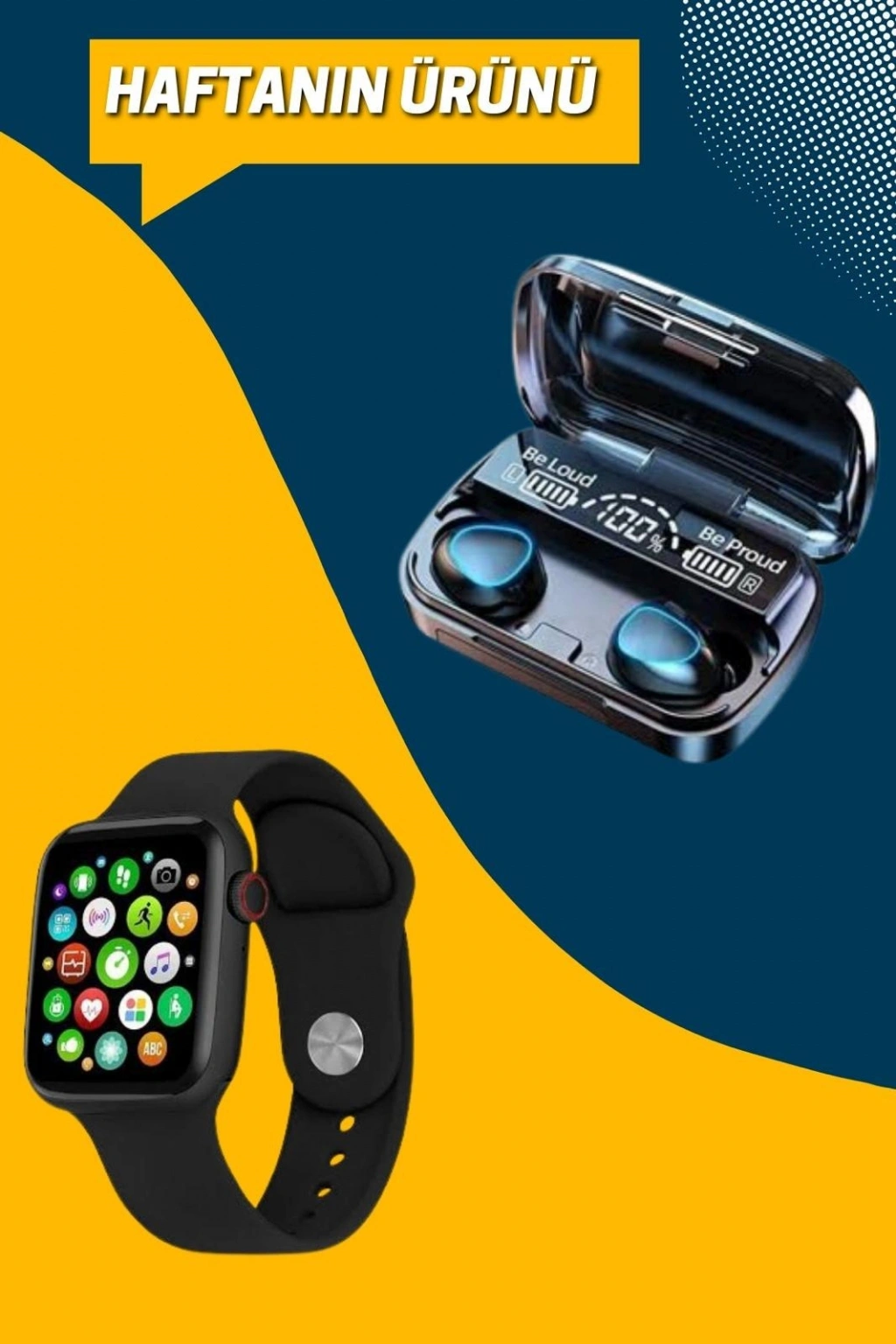 KULAKLIK:Bu Bluetooth kulaklık, Aktif Gürültü Önleme (ANC) özelliği ile dış dünyanın dikkat dağıtıcı seslerini engelleyerek, kullanıcıların müziğe veya telefon görüşmelerine tam anlamıyla odaklanmasını sağlar. ANC teknolojisi, özellikle toplu taşıma araçlarında, kalabalık ortamlarda veya ofislerde kullanım sırasında fark yaratır.İthalatçı garantili olması, ürünü güvenle satın almanızı ve olası bir problemde teknik destek alabilmenizi sağlar. Ayrıca, 2 yıl garanti süresi, uzun vadeli bir kullanım güvencesi sunarak kullanıcıların cihazı gönül rahatlığıyla tercih etmesine olanak tanır.Suya ve tere dayanıklı yapısı, spor yaparken, yoğun aktiviteler sırasında veya yağmurlu havalarda bile sorunsuz bir kullanım deneyimi sunar. Bu dayanıklılık özelliği, hem aktif bir yaşam tarzını benimseyenler hem de gün boyunca hareket halinde olan kullanıcılar için idealdir.Kulaklık, dokunmatik kontrol paneli sayesinde kullanıcı dostu bir deneyim sunar. Müzikler arasında kolayca geçiş yapabilir, çağrıları yanıtlayabilir veya reddedebilirsiniz. Bu özellik, fiziksel düğmelere gerek kalmadan işlemlerinizi zahmetsizce gerçekleştirmenizi sağlar.Ayrıca, kulaklıkta yer alan dahili mikrofon, net ve kaliteli telefon görüşmeleri yapmanızı mümkün kılar. Eller serbest özelliği ile, telefonunuzu elinize almadan çağrılarınızı yönetebilir ve işlerinize kesintisiz devam edebilirsiniz.Şık tasarımı, üstün ses kalitesi ve pratik özellikleriyle bu kulaklık, günlük hayatta ve spor yaparken mükemmel bir kullanım deneyimi sunar.AKILLI SAAT:Bu akıllı saat, modern teknoloji ile günlük hayatınızı kolaylaştıracak özellikleri bir araya getiren yenilikçi bir cihazdır. Tüm iOS ve Android akıllı telefonlarla uyumlu olan bu saat, geniş bir kullanıcı kitlesine hitap eder. Siri sesli asistan desteği sayesinde sesli komutlarla işlemlerinizi hızlıca gerçekleştirebilirsiniz. Bluetooth bağlantısı aracılığıyla çağrı yapma, çağrılara cevap verme veya reddetme, sık görüşülenler listesini yönetme, çağrı geçmişini görüntüleme ve arayan kimliğini görme gibi birçok özelliği destekler. Ayrıca, SMS ve diğer uygulamalardan gelen bildirimleri görüntüleme ve okuma imkanı sunar.44 mm paslanmaz çelik kasası, dayanıklılığı ve şıklığı bir arada sunar. 240x285 piksel çözünürlükteki, köşeden köşeye tam gelişmiş dokunmatik OLED ekranı, parlak ve net bir görüntü deneyimi sağlar. 280 mAh Li-Po bataryası, uzun süreli kullanım sunarak gün boyu yanınızda olmasını garanti eder. 128 MB bellek kapasitesi ve aktif iki yan tuşuyla kullanıcı dostu bir arayüz sunar.Sağlık ve spor odaklı özellikleriyle öne çıkan bu cihaz, günlük aktivitelerinizi ve sağlık durumunuzu takip etmenize yardımcı olur. Pedometre özelliğiyle egzersiz süresi, kat edilen mesafe ve yakılan kalori gibi verilere ulaşabilirsiniz. EKG, kan basıncı, tansiyon ölçümü ve kandaki oksijen oranını ölçme gibi üçlü sağlık takibi özellikleri sayesinde sağlığınızı yakından izleyebilirsiniz. Uyku takibi, hava durumu, kronometre, alarm, çağrı hatırlatma, hareketsizlik ve su içme hatırlatmaları gibi işlevlerle hayatınızı kolaylaştırır.Spor severler için, koşu, bisiklet, kuvvet antrenmanı, basketbol, tenis, voleybol ve futbol gibi çoklu spor modları sunar. Veri (DATA) sekmesi sayesinde günlük ve anlık sağlık verilerinizi analiz edebilirsiniz. Uygulama üzerinden sınırsız saat kadranı seçebilir ve ekranınıza dilediğiniz fotoğrafı yerleştirebilirsiniz. Akıllı bileklik hareket sensörü, ekranın kolayca açılıp kapanmasını sağlar.10 kişiye kadar hızlı arama özelliği, değiştirilebilir kordon seçeneği ve Türkçe dahil 23 farklı dil desteğiyle kişiselleştirilebilir bir deneyim sunar. Uçak modu ve rahatsız etme modu gibi işlevlerle kullanımınızı daha verimli hale getirebilirsiniz. Saat üzerinden müzik dinleme, uzaktan fotoğraf çekme gibi eğlenceli özellikler de cihazın dikkat çeken detayları arasındadır.Şıklığı, dayanıklılığı ve fonksiyonelliği bir araya getiren bu akıllı saat, hem teknoloji tutkunları hem de aktif bir yaşam tarzını benimseyen kullanıcılar için mükemmel bir tercihtir.