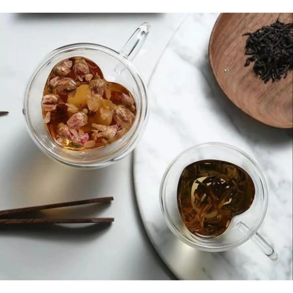 KALP ŞEKLİNDE CAM BARDAK - ÇİFT KATMANLI TASARIMÜrün ÖzellikleriŞık ve romantik tasarımıyla öne çıkan Kalp Şeklinde Cam Bardak, içeceklerinizi keyifle yudumlamanız için özenle tasarlanmıştır. Çift katmanlı yapısı, sıcak ve soğuk içecekler için güvenli kullanım sunarken, iç kısmındaki kalp detayı estetik bir dokunuş sağlar. Çay, kahve, bitki çayı, sıcak çikolata ve soğuk içecekler için mükemmel bir seçenektir.Yüksek kaliteli borosilikat camdan üretilen bardak, dayanıklı ve ısıya karşı dirençlidir. Çift katmanlı tasarımı, sıcak içeceklerin ısısını uzun süre muhafaza ederken elinizi yakmaz. 200-250 ml kapasitesi ile ideal bir içecek deneyimi sunar. El yıkaması önerilir ve kolay temizlenebilir yapısıyla pratik bir kullanım sağlar.Çift katmanlı koruma özelliği ile hem estetik hem de fonksiyoneldir. Masa dekorasyonuna şıklık katarken, sıcak ve soğuk içecekler için çok amaçlı kullanım sağlar.Paket İçeriği1 adet Kalp Şeklinde Cam Bardak