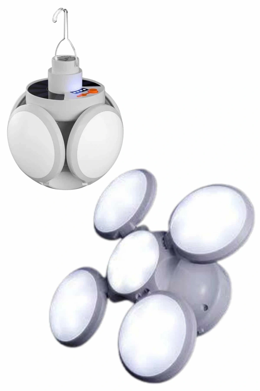 Solar Güneş Enerjisi ve USB Şarjlı 5 Kanatlı Taşınabilir Lamba – Çok Fonksiyonlu ve Pratik Aydınlatma ÇözümüHer türlü açık hava etkinliğinde, acil durumlarda veya günlük yaşamda ihtiyaç duyduğunuz her an pratik bir aydınlatma çözümü sunan Solar Güneş Enerjisi ve USB Şarjlı 5 Kanatlı Lamba, güçlü aydınlatma kapasitesi ve taşınabilir yapısıyla fark yaratır. Hem güneş enerjisiyle hem de USB ile şarj edilebilir özelliği sayesinde her koşulda güvenilir bir ışık kaynağı sağlar.Üzerindeki askı aparatı ile bu pratik lamba, çadırdan ağaca, arabanın içinde ya da evinizin çeşitli alanlarında kolaylıkla kullanılabilir. Katlanabilir tasarımı, ışık açısını istediğiniz gibi ayarlamanızı sağlayarak, geniş bir alanı etkili şekilde aydınlatmanıza olanak tanır. Bu özellik, özellikle dış mekan aktiviteleri ve acil durumlar için son derece kullanışlıdır.Solar panel sayesinde doğa dostu bir enerji kaynağı sunan bu lamba, 5.5V polikristal silikon güneş paneli ile şarj edilebilirken, USB kablosu ile de şarj edilerek her iki seçeneği de esnek şekilde kullanmanızı sağlar. Bu, size her koşulda enerji sağlamanın yanı sıra çevreye duyarlı bir kullanım deneyimi sunar.45 LED ışık kaynağı, 6 farklı ışık moduyla ortamınıza uygun ışık düzeyini ayarlamanızı sağlar. Hem güçlü ışık modlarında hem de düşük ışık ihtiyaçlarınızda kullanabileceğiniz 5 farklı ışık modu ile çok yönlü kullanım sağlar. Su geçirmez IP65 özelliği, dış mekan koşullarına karşı dayanıklıdır ve suya dayanıklı yapısıyla yağmurlu havalarda bile güvenle kullanılabilir.Teknik Özellikler:Güneş Paneli: 5.5V polikristal silikon güneş paneliPil: 18650 lityum pil, 2400mAhIşık Kaynağı: 45 LEDÇalışma Süresi: 6-8 saatŞarj Süresi: Solar şarj için 8 saat / USB şarj ile 6 saatŞarj Yöntemi: Solar şarj (DC 3.5V) / USB şarj (voltaj 4.5V)Su Geçirmezlik: IP65Renk Sıcaklığı: 6500KÜrün Boyutu: 14 cm * 11.5 cmPaket İçeriği:1 Adet 5 Kanatlı Solar Pratik LambaBu taşınabilir solar lamba, hem acil durumlarda hem de kamp, yürüyüş gibi açık hava etkinliklerinde her zaman yanınızda bulundurabileceğiniz, dayanıklı ve verimli bir aydınlatma aracıdır. Kolay şarj edilebilir ve pratik kullanımı ile ihtiyaç duyduğunuz her an size aydınlık sağlar.