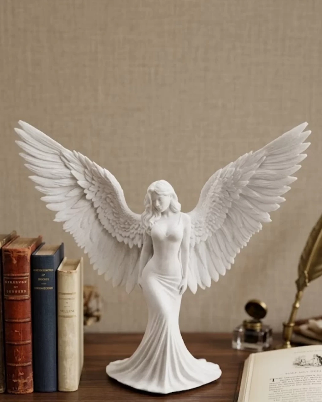 Melek insan figürlü 3D dekoratif heykel biblo, zarif tasarımı ve estetik görünümü ile yaşam alanlarında dikkat çeken dekoratif ürünlerden biridir. Kanatlarını iki yana açmış melek figürü, huzur, koruma ve zarafet gibi anlamları temsil eden güçlü bir semboldür. Bu nedenle melek figürleri ev dekorasyonunda hem estetik hem de anlam taşıyan dekoratif objeler arasında yer alır. Modern dekorasyon anlayışı ile tasarlanan bu heykel biblo, bulunduğu ortama zarif ve huzurlu bir atmosfer kazandırır.3D baskı teknolojisi ile üretilen bu dekoratif heykel, detaylı kanat yapısı ve akıcı figür formu ile oldukça estetik bir görünüm sunar. Figürün kanat detayları dikkat çekici bir tasarım oluştururken aynı zamanda ürüne sanatsal bir karakter kazandırır. Elbisenin akıcı formu ve figürün duruşu, dekoratif heykelin zarif bir sanat objesi gibi görünmesini sağlar.Dekoratif melek figürü özellikle salon dekorasyonunda oldukça şık bir aksesuar olarak kullanılabilir. Konsol üzerinde, şömine rafında veya sehpa üzerinde sergilendiğinde bulunduğu ortama modern ve estetik bir görünüm kazandırır. Aynı zamanda kitaplık raflarında veya çalışma masalarında da dikkat çekici bir dekoratif obje olarak kullanılabilir.Minimalist dekorasyon, modern dekorasyon ve klasik dekorasyon stilleri ile uyum sağlayabilecek sade ve estetik bir tasarıma sahiptir. Beyaz renkli yapısı sayesinde farklı renklerdeki dekorasyonlarla kolayca uyum sağlar ve bulunduğu ortamda dikkat çekici bir dekoratif detay oluşturur.Dekoratif melek figürlü biblo aynı zamanda anlamlı bir hediye alternatifi olarak da tercih edilebilir. Ev hediyesi, yeni ev hediyesi, doğum günü hediyesi veya özel gün hediyesi olarak verilebilecek zarif bir dekoratif üründür.Estetik tasarımı, detaylı kanat yapısı ve zarif görünümü ile melek insan figürlü 3D dekoratif heykel biblo yaşam alanlarında şık ve huzurlu bir atmosfer oluşturan dekoratif bir aksesuardır.