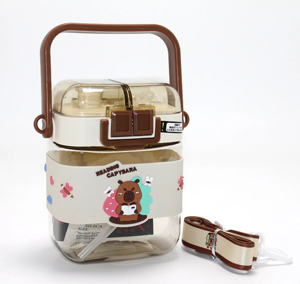 Nevamel® Kapibara Desenli Çift Bölmeli Pipetli Çocuk Matarası