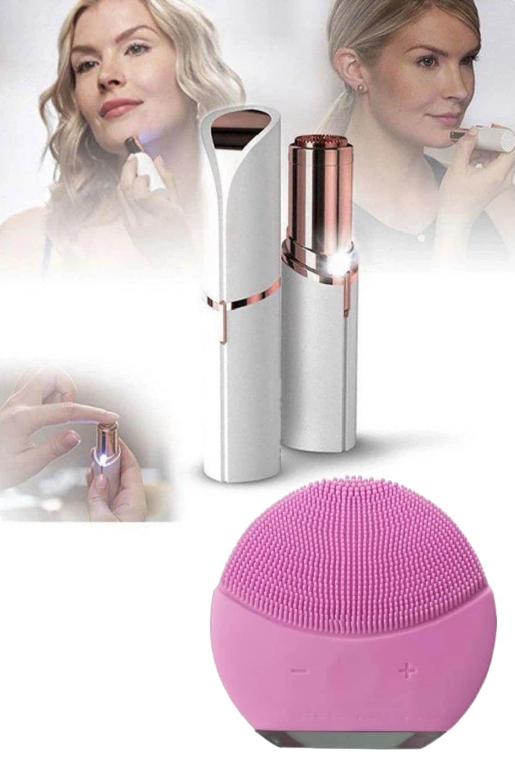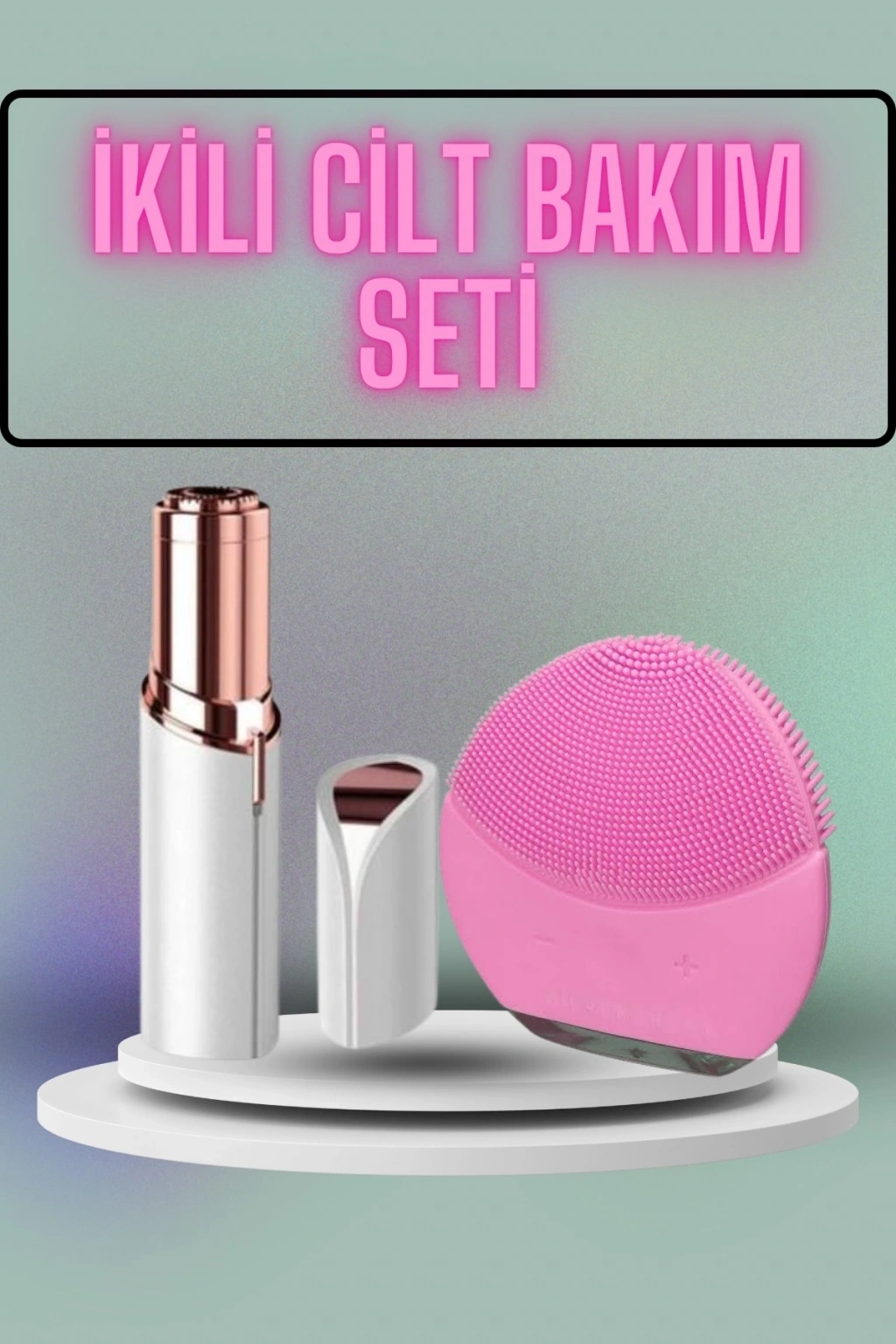 Nevamel KAŞ BIYIK VE YÜZ EPİLASYON ALETİ VE TİTREŞİMLİ YÜZ TEMİZLEME MASAJ ALETİ İKİLİ SET