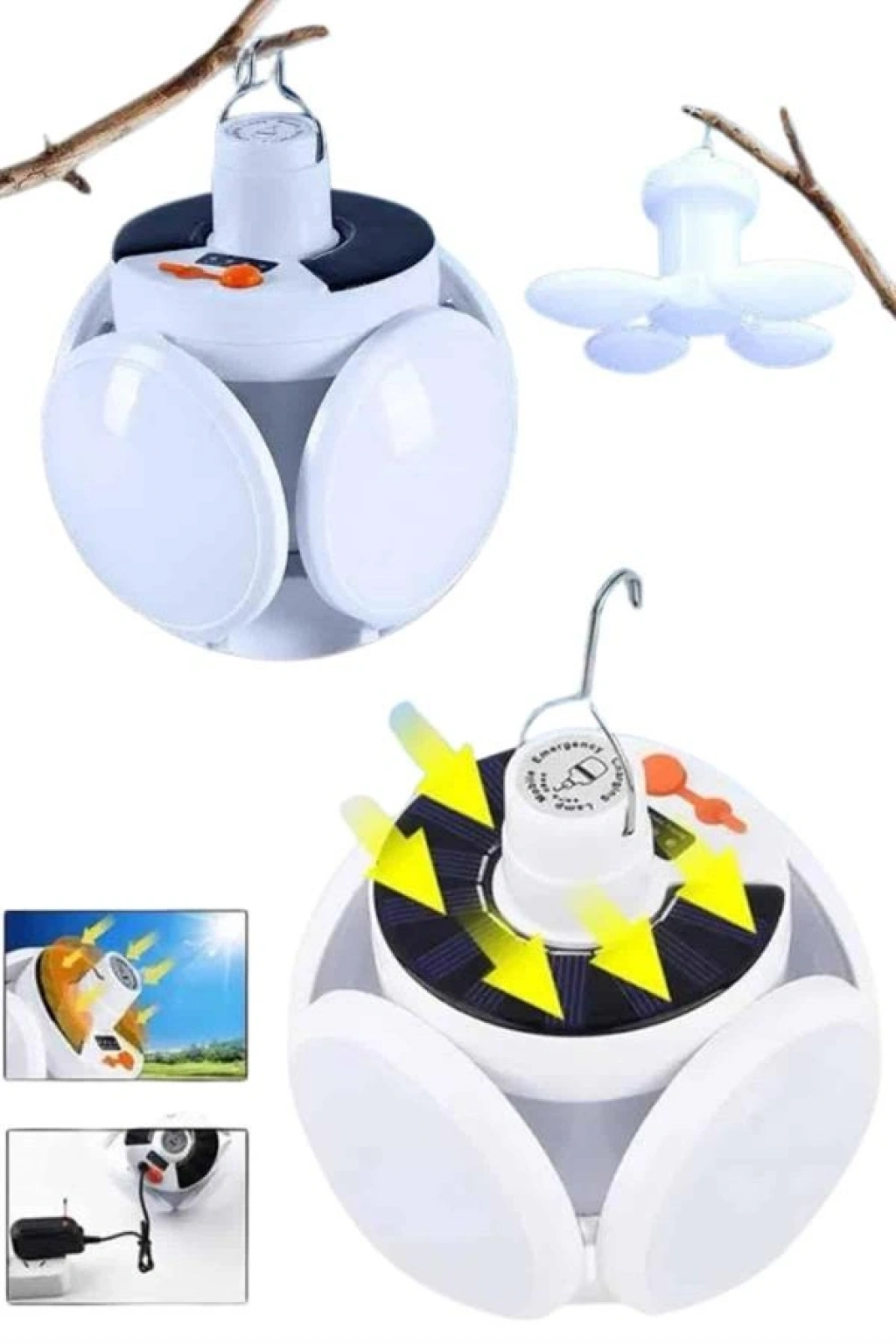 Nevamel Katlanabilir Askılı Kamp Lambası 5 Kanatlı Pratik Güneş Enerjili