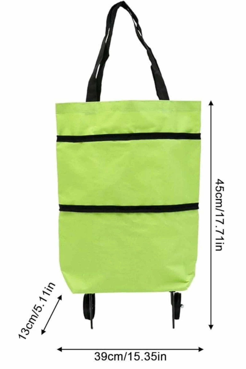 Katlanabilir tekerlekli yapısı, kullanıcılarına büyük kolaylık sağlamaktadır. Kullanılmadığında cüzdan büyüklüğünde bir çanta haline gelebilirken, ihtiyaç duyduğunuzda saniyeler içinde tam boyutlu bir pazar arabasına dönüşür. Bu sayede her zaman yanınızda taşıyabilir ve gerektiğinde büyük bir taşıma yardımcısı olarak kullanabilirsiniz. Tekerlekli tasarımı sayesinde ağır yükleri bile rahatça taşımanızı sağlarken, sağlam metal çubukları sayesinde dengeli bir kullanım sunar. Üst kısmında bulunan cırt cırtlı kapak, içindeki malzemelerin dökülmesini önler ve güvenli bir taşıma imkânı sunar.