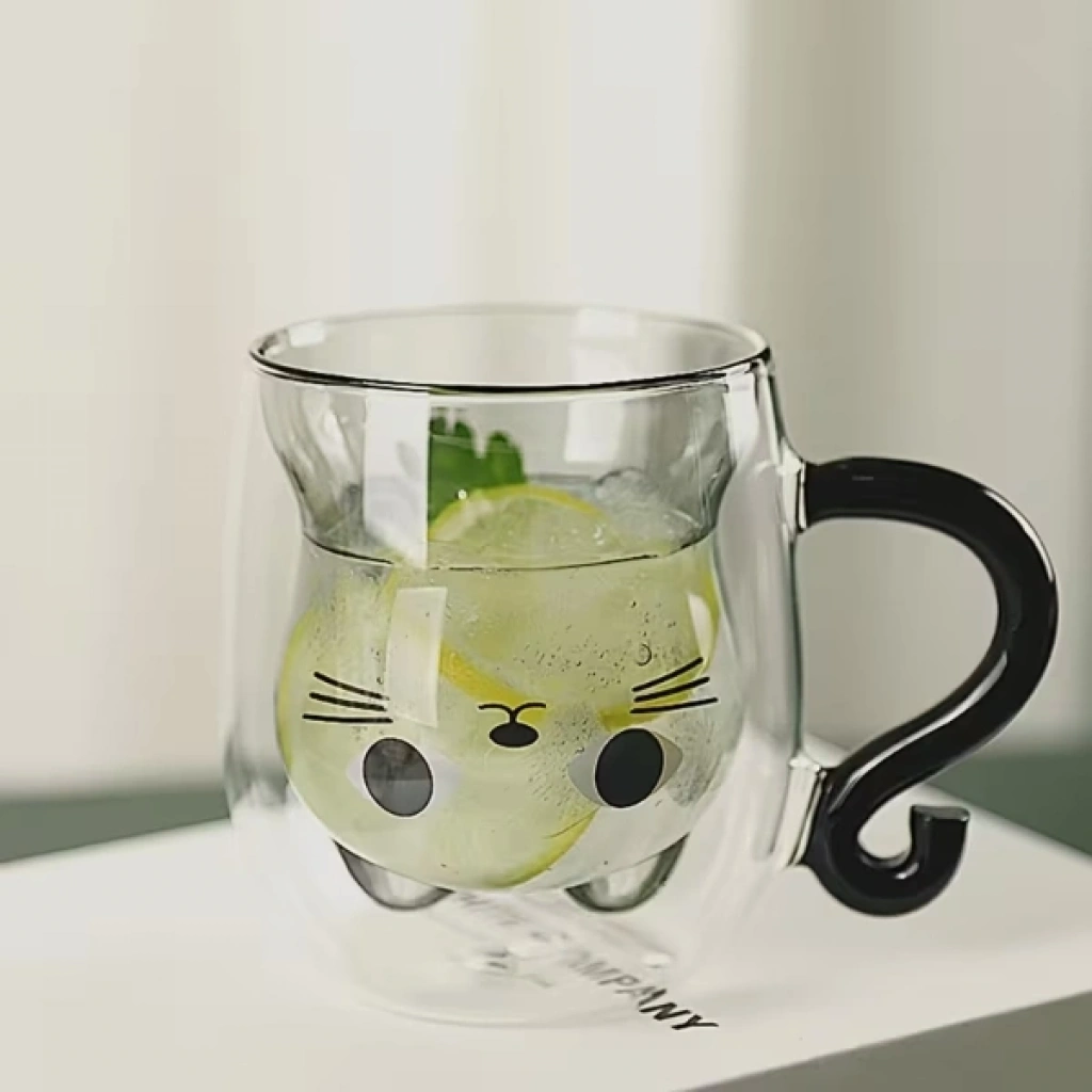 KEDİ FİGÜRLÜ ÇİFT CİDARLI CAM BARDAKÜrün ÖzellikleriKedi figürlü çift cidarlı cam bardak, sevimli tasarımı ve modern görünümüyle içeceklerinizi çok daha keyifli bir şekilde tüketmenize yardımcı olur. Çift cidarlı yapısı sayesinde içeceklerin sıcaklığını daha uzun süre korurken dış yüzeyi elinizi yakmaz ve bu sayede rahat bir kullanım sağlar. 330 ml kapasitesi ile kahve, süt, latte, çay, soğuk içecekler ve aromalı içecekler için ideal bir boyut sunar. Dayanıklı borosilikat cam malzemeden üretilen bu bardak hafif, şık ve çizilmeye karşı dayanıklıdır. Hem yetişkinlerin hem de çocukların kullanımına uygun olan bu tasarım, masanıza dekoratif bir görünüm katar ve hediye olarak da mükemmel bir seçenek oluşturur.Paket İçeriği1 Adet Kedi Figürlü Çift Cidarlı Cam Bardak