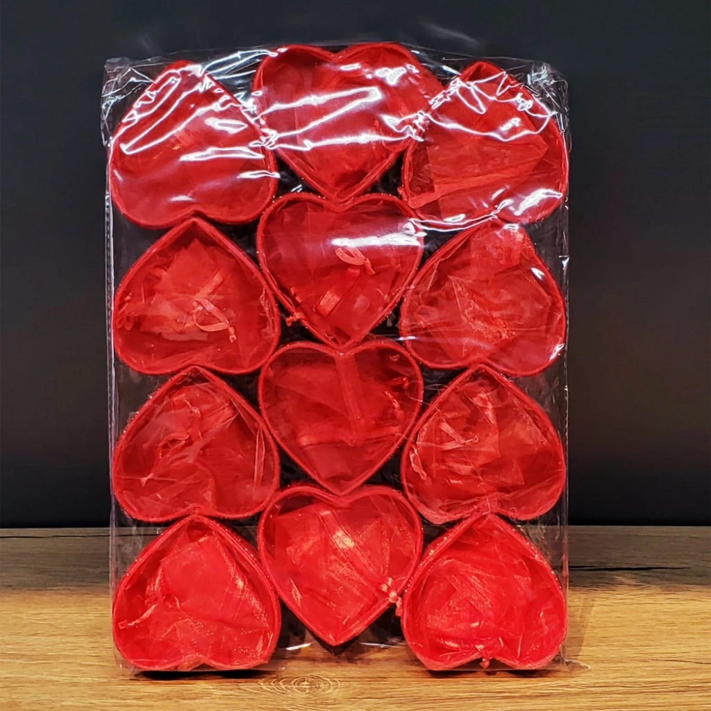 Nevamel Kırmızı Kalpli Tül Kese