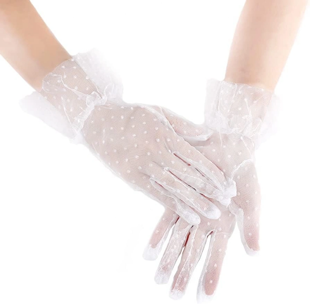 Nevamel Kısa Boy Güpürlü Beyaz Puantiyeli Tül Eldiven