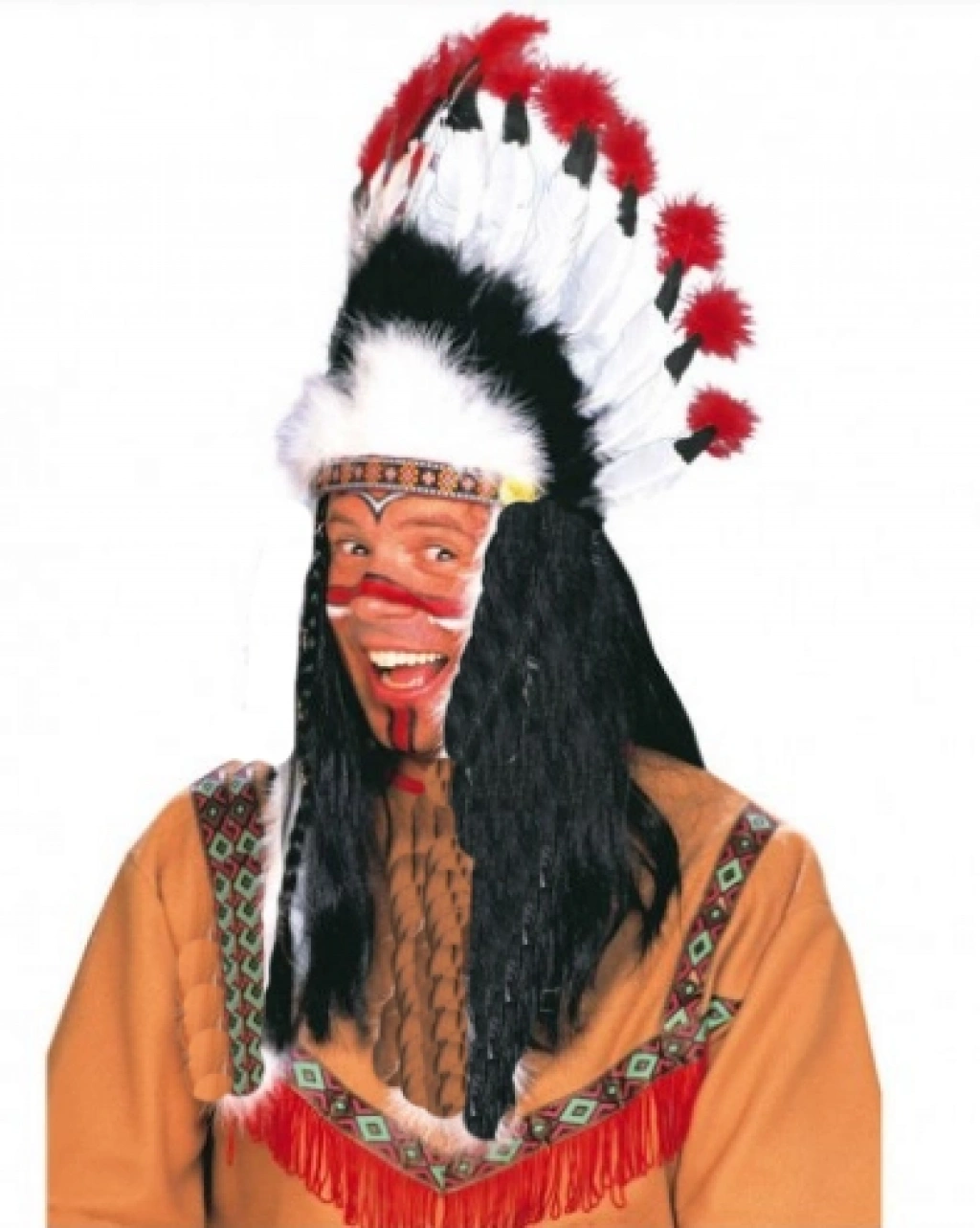 Nevamel Kızılderili Başlığı Şapkası kırmızı beyaz