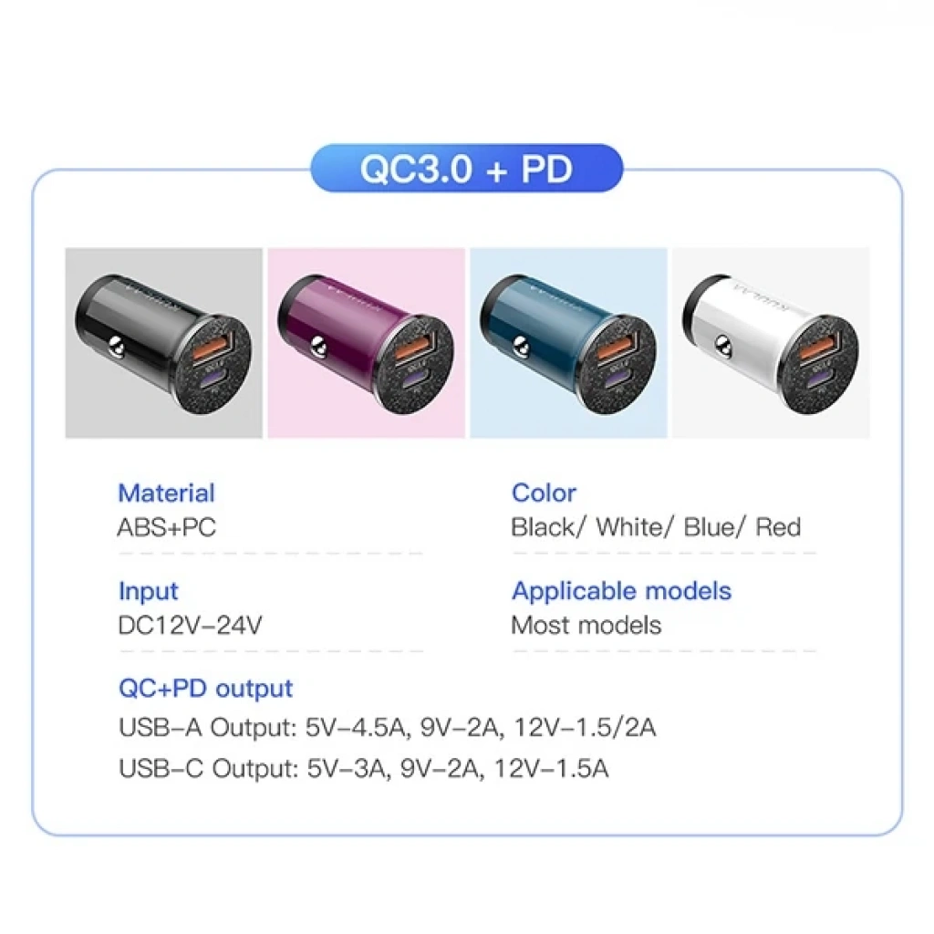 KUULAA 42W USB + Type-C Çift Çıkışlı Mini Hızlı Araç Şarj Cihazı