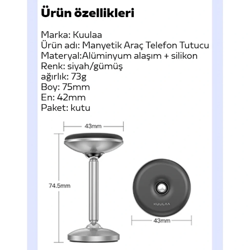 KUULAA Güçlü Mıknatıslı Manyetik Standlı Cep Telefon Araç Tutucu
