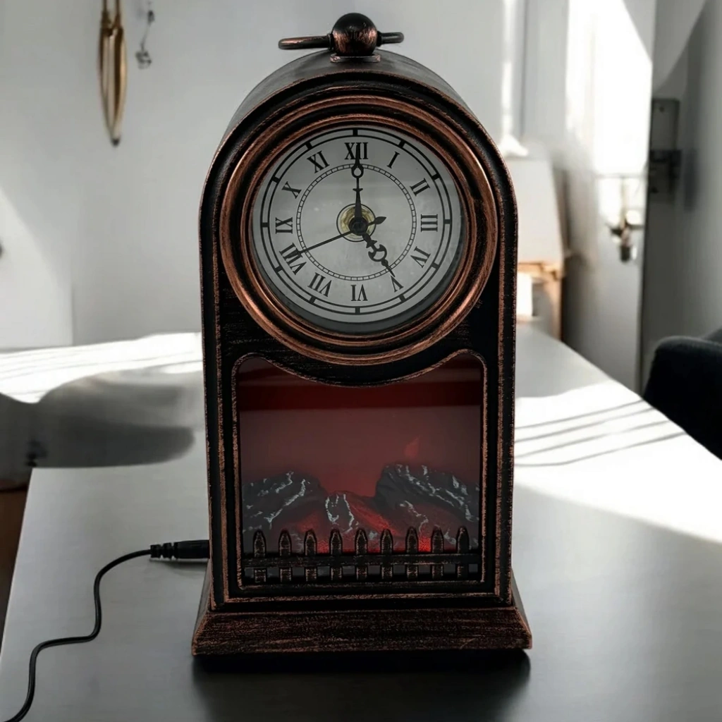 Nevamel® LED Işıklı Siyah Eskitme Şömine Saat