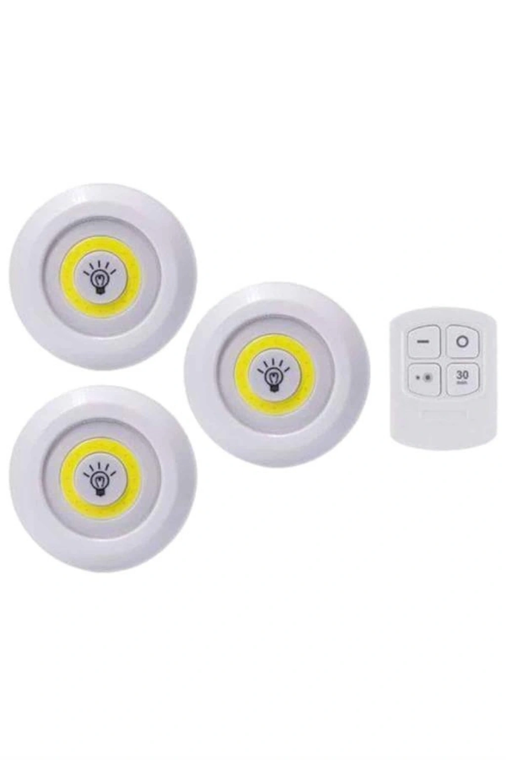Işık rengi :Beyaz (gün ışığı)Işık pil tipi: 3 x aaa pil (dahil değildir)Uzaktan kumanda pili tipi: 2 x aaa pil (dahil değildir)Led Işık Kablosuz Uzaktan Kumandalı Dolap Içi Led Ampul Seti 3lü Set Gece Lambası Spot LambaUzaktan Kumandalı 3 Lü Ayarlanabilir Spot LED Işık Kablosuz Lamba Kumandalı Işık Ayarlanabilir 3lü Led IşıkPilli Süre Ayarlı · Çok şık ve kullanışlı modern bir üründür.Kaliteli malzemeden hoş bir görünüme sahiptir.Yapısı ile pratik kolay kullanım sunuyor. ·Temizliği de çok kolay olan sıcak görünümü ile şıklık katacakDekoratif · Estetik Ve kullanışlı · Şık tasarım · Kanserojen madde içermez · Kaliteli ham maddeden üretilmiştir.Led light with remote control set of 3 · Işık derecesini ayarlayabilirsinizYanma süresini ayarlayabilirsinizUzaktan kumanda ile kontrol edilir · Her türlü zemine kolay montaj edilir ·Güçlü led ışığa sahiptir · 3 lü set olarak gönderilirIşık pil tipi: 3 x aaa pil (dahil değildir)Uzaktan kumanda pili tipi: 2 x aaa pil (dahil değildir)Işık rengi :Beyaz (gün ışığı)Gövde malzemesi :Sert plastikAmpul ömrü: 100.000 saatKullanım Alanları: Avcılık, kamp, ev, okul, araba, otel, restoranÜrün Boyutlar: 9 cm - 2 cm
