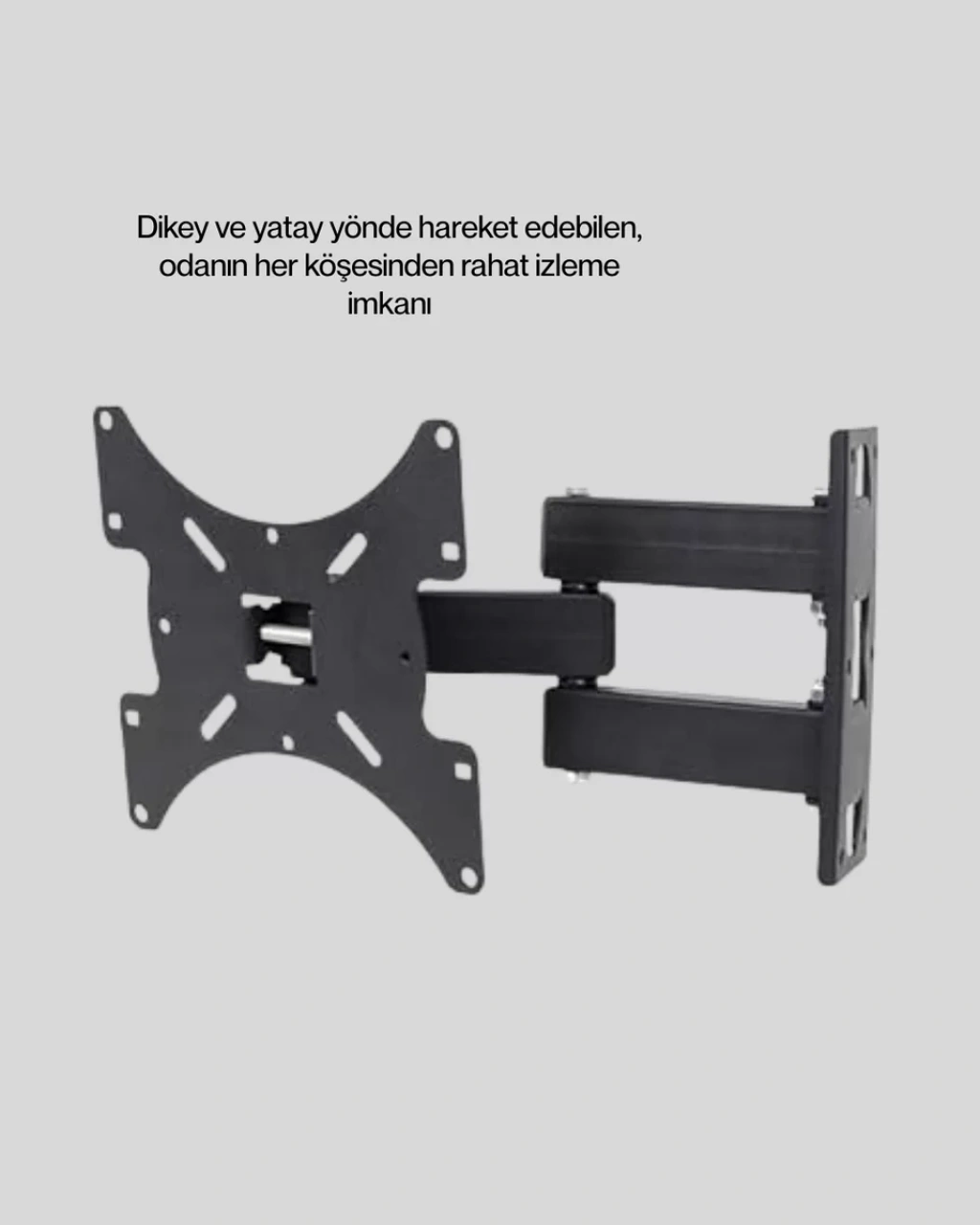 Bu hareketli TV duvar askı aparatı, televizyonunuzu duvara sabitleyerek alan tasarrufu sağlar. 3 hareketli yapısı sayesinde televizyonu sağa-sola çevirebilir, yukarı-aşağı açı ayarı yapabilirsiniz. Özellikle salon, oturma odası ve ofis kullanımı için idealdir.VESA uyumlu yapısı sayesinde farklı montaj delik ölçülerine sahip televizyonlarla rahatlıkla kullanılabilir. Sağlam ve uzun ömürlü yapısı ile güvenli kullanım sunar.
