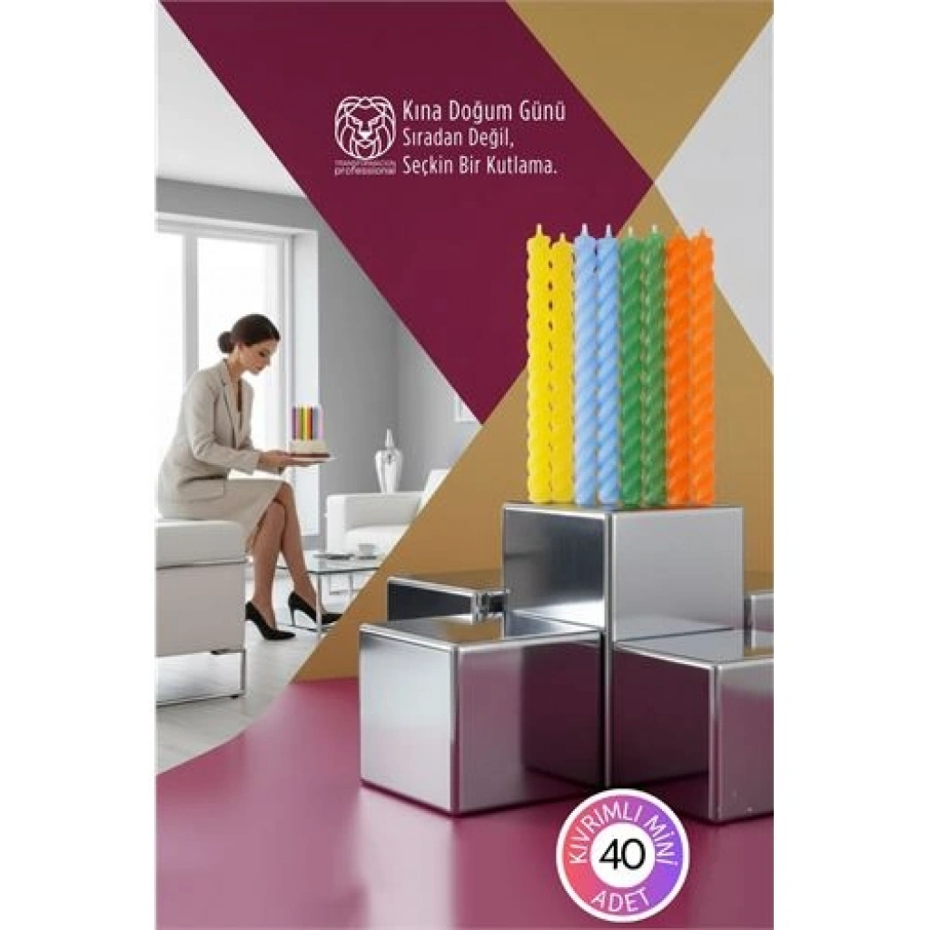 Nevamel® Lüks Burgu Mum Seti: 40’lı Renkli Butik Doğum Günü Kına ve Özel Gün Mumları 8 cm