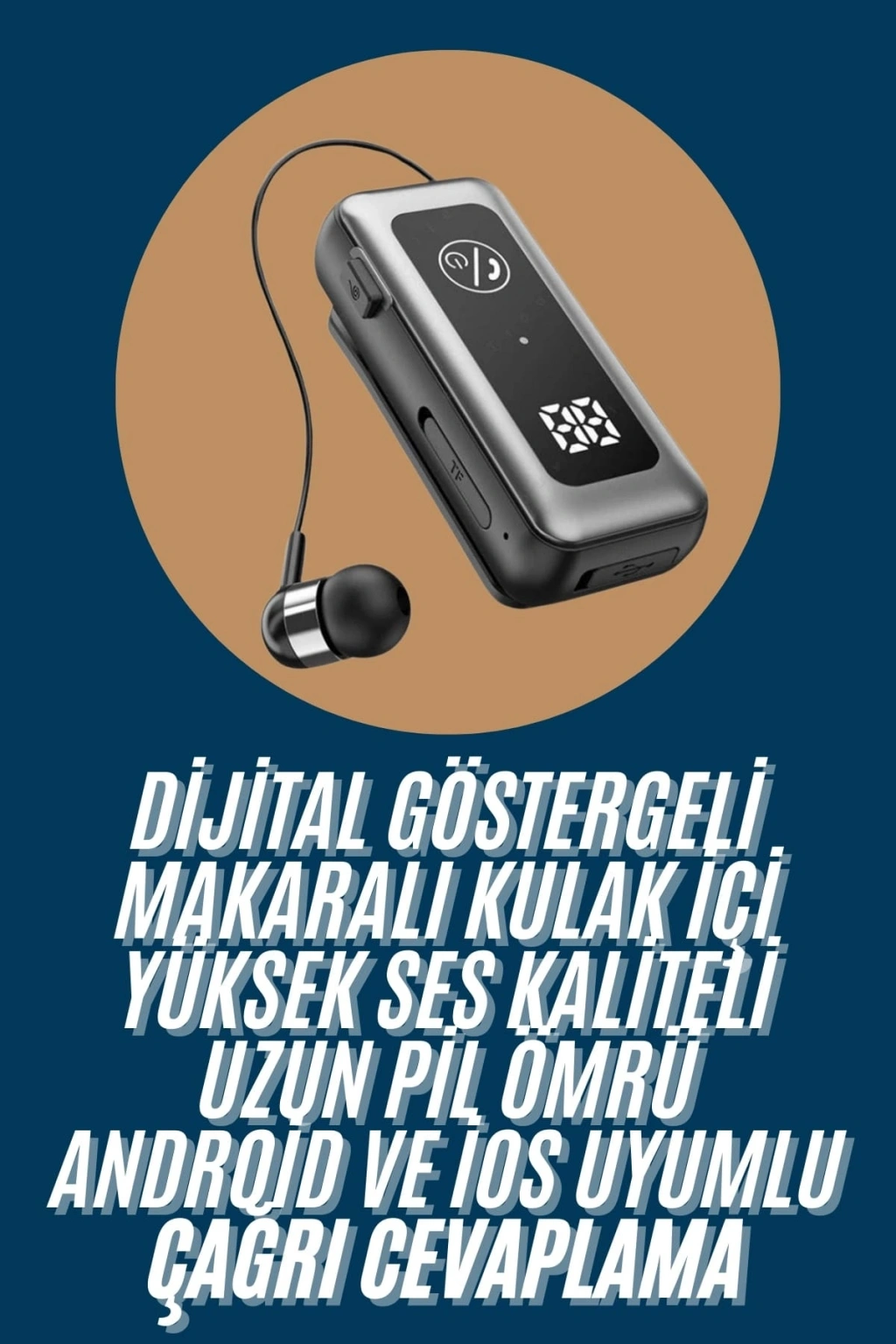 Bluetooth 5.2 Makaralı Titreşimli Kulaklık | Dijital Ekranlı, Hafıza Kartı Destekli, Çift Cihaz BağlantılıGelişmiş teknolojilerle donatılmış bu Bluetooth 5.2 makaralı titreşimli kulaklık, kullanıcıya konforlu ve çok yönlü bir müzik ve iletişim deneyimi sunar. Hafıza kartı desteği sayesinde yalnızca kablosuz bağlantıya bağlı kalmadan, microSD kartınızı takarak doğrudan müzik dinleyebilirsiniz. Bluetooth 5.2 teknolojisiyle donatılan kulaklık, stabil ve kesintisiz bir bağlantı sağlar; aynı anda iki farklı cihaza bağlanabilme özelliğiyle de kullanım kolaylığını üst seviyeye taşır.Kulaklık, içe sarılabilen kablo tasarımı (makaralı sistem) ile karışıklığın önüne geçerken, dijital ekranı sayesinde batarya seviyesini anlık olarak takip etmenizi mümkün kılar. Ayrıca, bağlantı durumunu gösteren LED ışık ve titreşimli bildirim sistemi sayesinde hiçbir çağrıyı kaçırmazsınız. Üzerindeki çok işlevli tuşlar sayesinde müzikleri kolayca kontrol edebilir; çalma, durdurma, atlama, ses seviyesi ayarlama gibi işlemleri hızlıca gerçekleştirebilirsiniz. Aynı zamanda, bazı kamera fonksiyonlarını da uzaktan kontrol edebilmeniz mümkündür.Yaka klipsi ile sabit kullanım sağlayan kulaklık, uzun süreli kullanımlar için ergonomik yapıya sahiptir. Kulak içine tam oturan tasarımı ile dış sesleri izole ederken, stereo ve HD ses kalitesi ile doğal ve berrak bir ses deneyimi sunar. Dinamik sürücüleri sayesinde müziği olduğu gibi, net ve dengeli biçimde yansıtır. Gürültü engelleme özelliğiyle donatılmış mikrofonu, görüşmeler sırasında çevresel sesleri filtreleyerek daha net bir iletişim sağlar.140mAh kapasiteli lityum-ion bataryası 20 saate kadar kesintisiz kullanım imkânı tanırken, sadece 20 dakikalık kısa bir şarj süresiyle yeniden kullanıma hazır hale gelir. Type-C şarj girişi sayesinde hızlı ve güvenilir şarj desteği sunar.Günlük kullanımda, ofiste, yürüyüşte ya da araçta kolaylıkla tercih edebileceğiniz bu kulaklık; teknoloji, pratiklik ve konforu bir araya getirerek hayatınızı kolaylaştırmak üzere tasarlandı.
