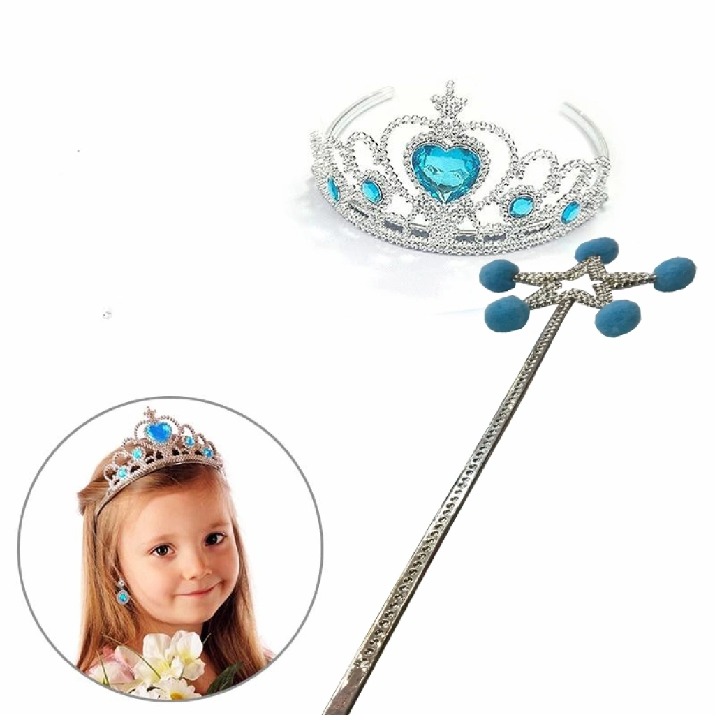 Nevamel Mavi Ponponlu Elsa Asası ve Kalp Taşlı Elsa Tacı