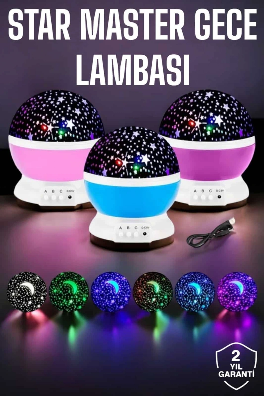 Yıldızlı Gökyüzü Projeksiyon Gece Lambası, evdeki her köşeye büyülü bir hava katmak için mükemmel bir üründür. Mavi ve mor ışıkların döner yapısı, tavanınıza büyüleyici bir şekilde yıldızlar, gezegenler ve ayı yansıtarak eşsiz bir gece manzarası sunar. Özellikle çocuklar için harika bir gece lambası olan Star Master, karanlıktan korkan çocukların daha rahat uyumasını sağlar. Gözleri rahatsız etmeyen yumuşak ışığı, gece boyunca sakin bir uyku ortamı oluşturur. Ayrıca, ışığın seviyesini ve rengini ayarlayabileceğiniz fonksiyonlarla, odanızda tam istediğiniz atmosferi oluşturabilirsiniz. Dönen yapısı sayesinde tavanınıza hareketli yıldızlar ve gezegenler yansıtarak her an farklı bir görsel deneyim yaşamanızı sağlar. Şeffaf üst kapak sayesinde ışık doğrudan tavana yansıtılabilir ya da farklı bir yönlendirilebilir. 4 adet AAA pil ile çalışan bu projeksiyon gece lambası, enerji verimli bir kullanım sağlar ve her yere kolayca taşınabilir. Star Master, sadece çocuklar için değil, aynı zamanda gece atmosferi yaratmak isteyen herkes için mükemmel bir tercihtir.